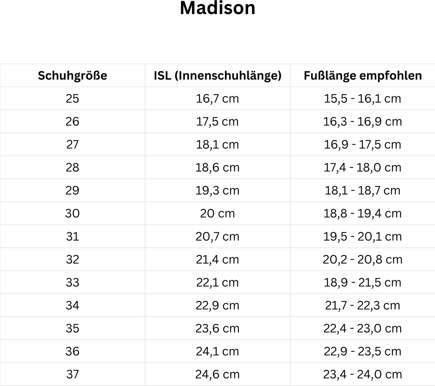 Hinweis zur Schuhgröße: Die Innensohle sollte ca. 12 mm länger als der Kinderfuß sein. Die Größentabelle finden Sie in den Produktbildern 📏✨