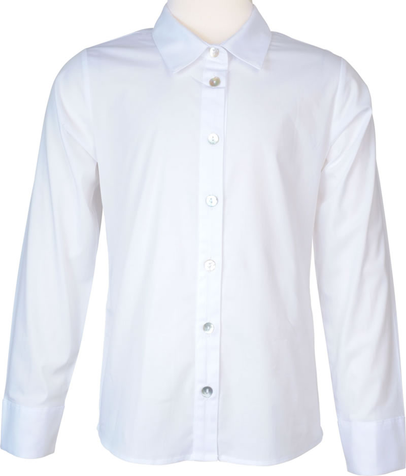 Klassische Bluse von KÖNIGSMÜHLE in weiß. Die leicht schimmernden Perlmuttknöpfe und der feine Baumwollstoff sorgen zu jedem Anlass für einen feinen Auftritt. Die Bluse lässt sich sehr gut mit verschiedensten Kleidungsstücken kombinieren.