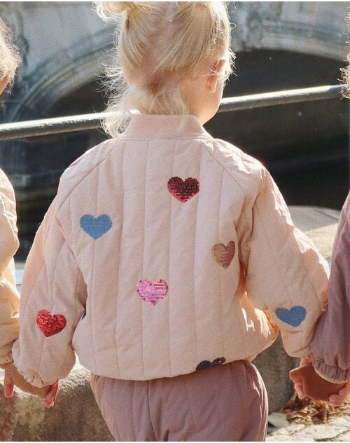 Konges Sløjd Bomber-Jacke 'Juno' mit Pailletten-Herzen - Cameo Rose 💗🤍