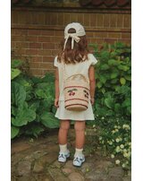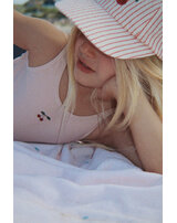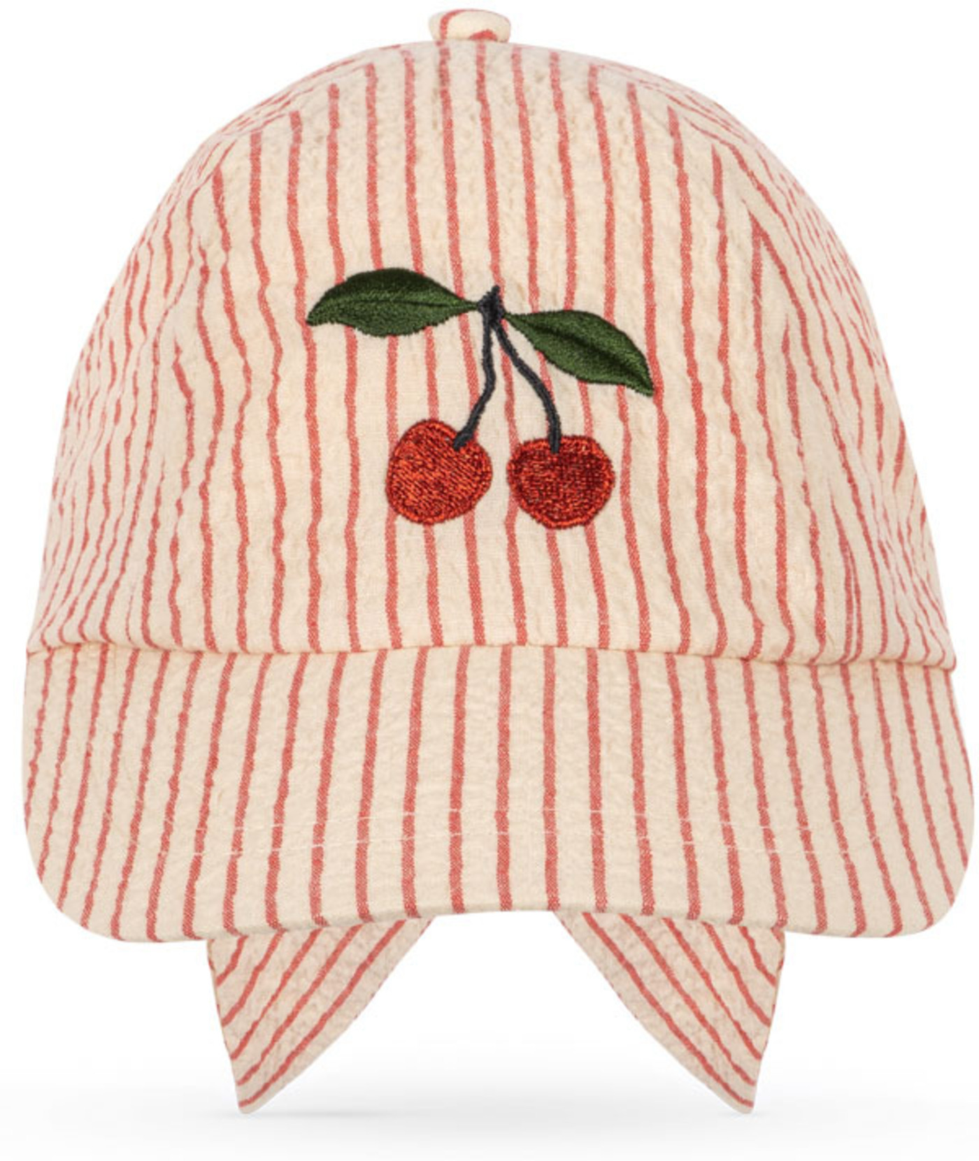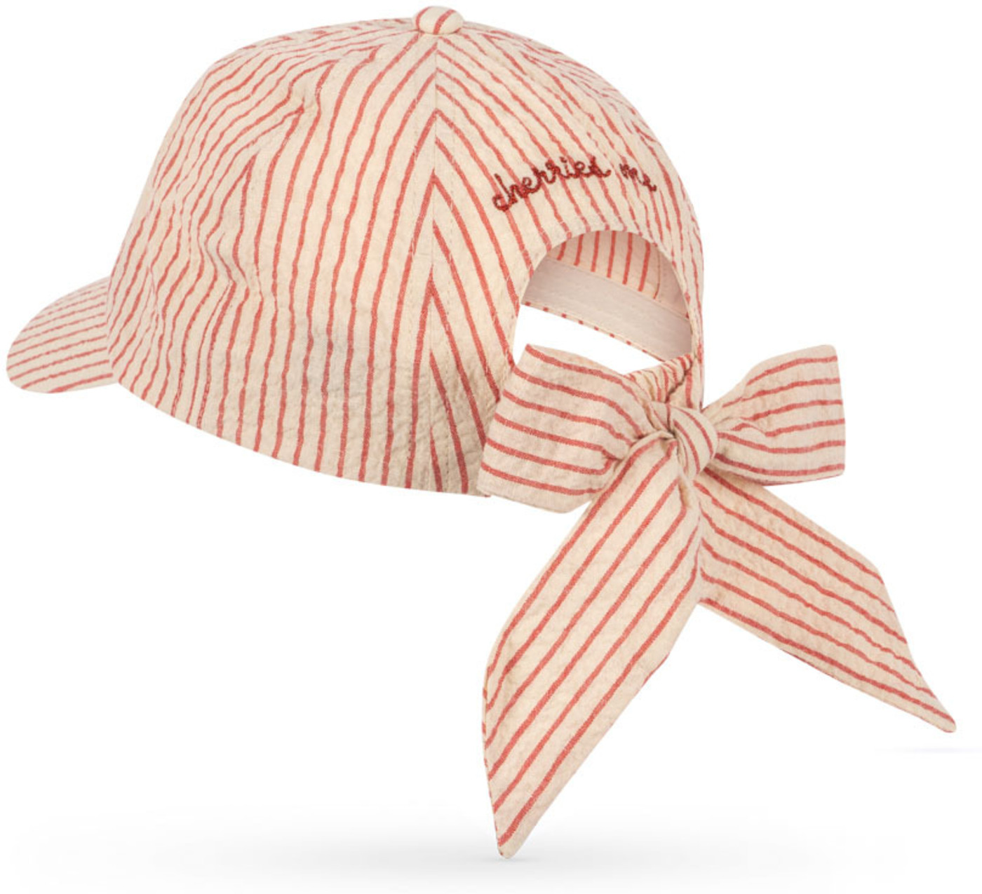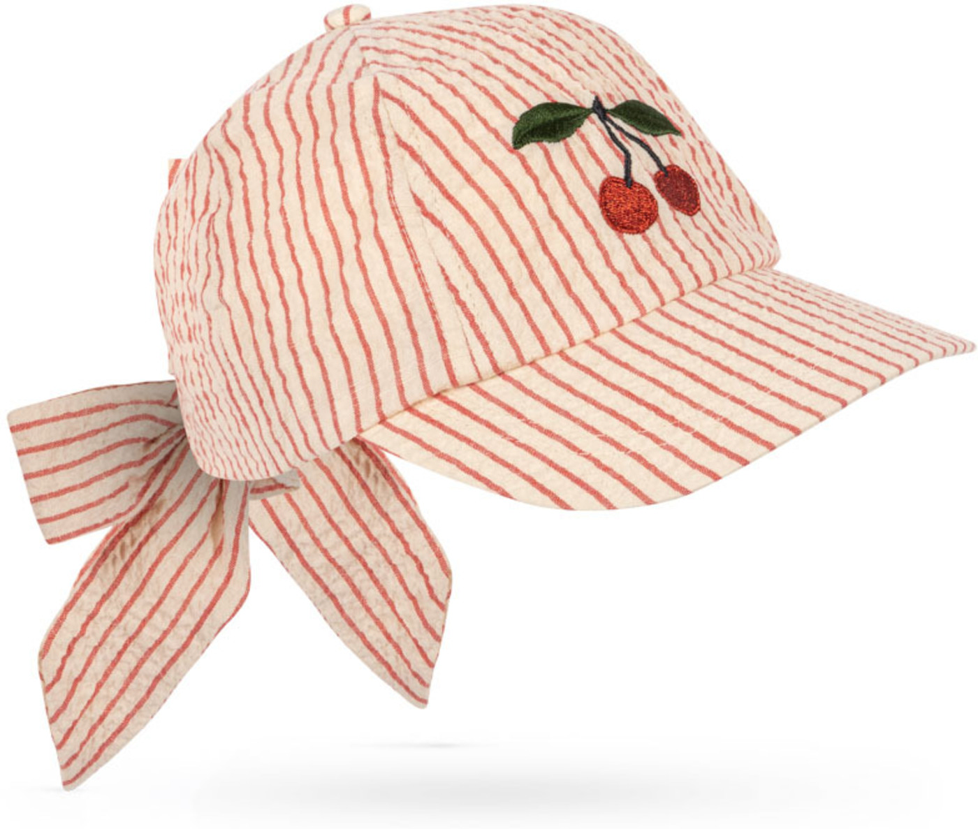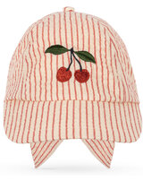 Konges Sløjd Cap mit bestickter Kirsche und Schleife zum Binden - Amour Stripe