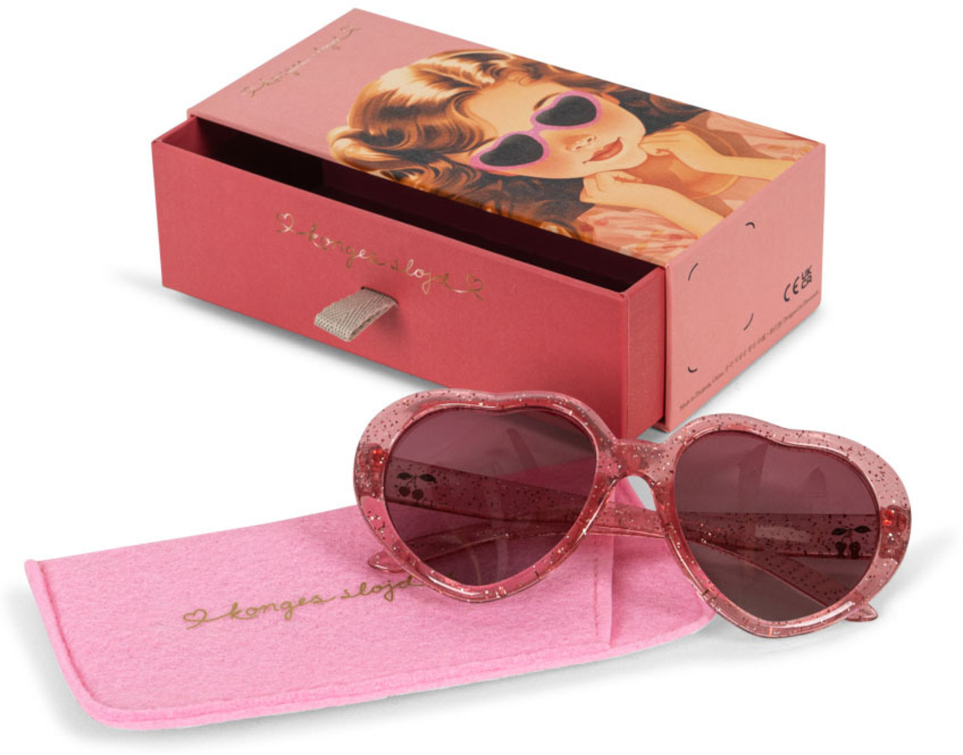 Konges Sløjd Herz-Sonnenbrille Junior mit Etui - Cherry Glitter
