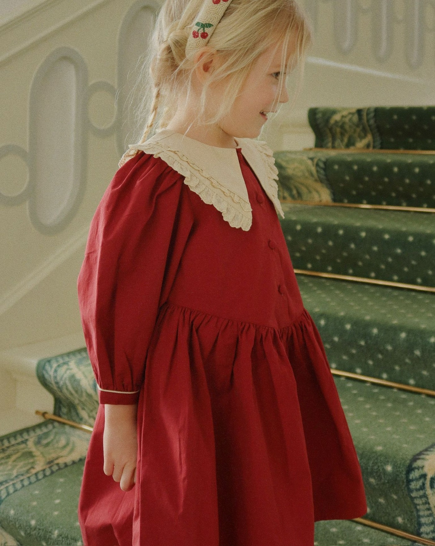 Konges Sløjd Kleid mit weitem Kragen aus 100 % Bio-Baumwolle - Red Dahli