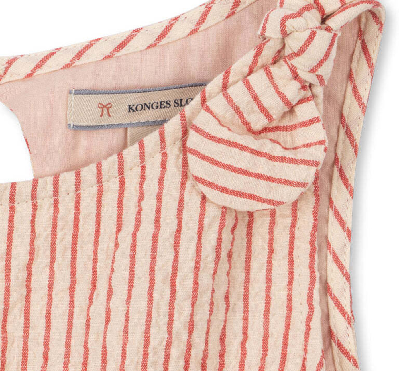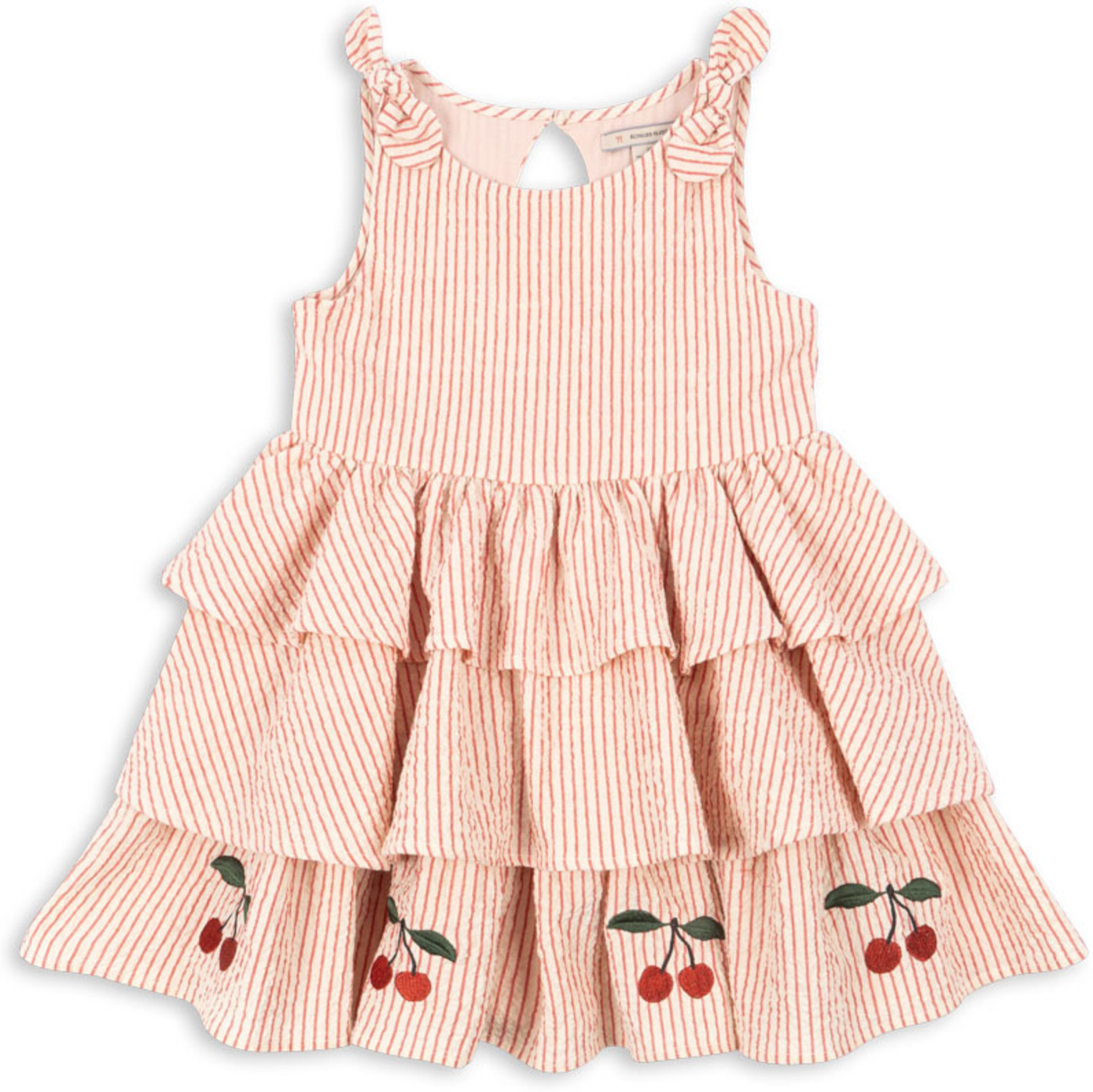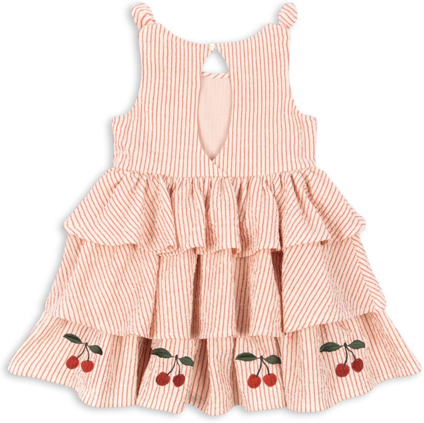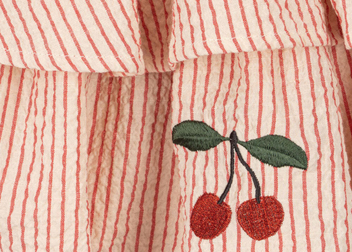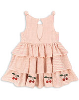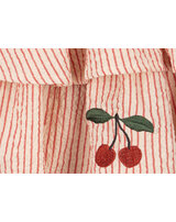 Konges Sløjd Seersucker-Kleid mit bestickten Kirschen - Amour Stripe