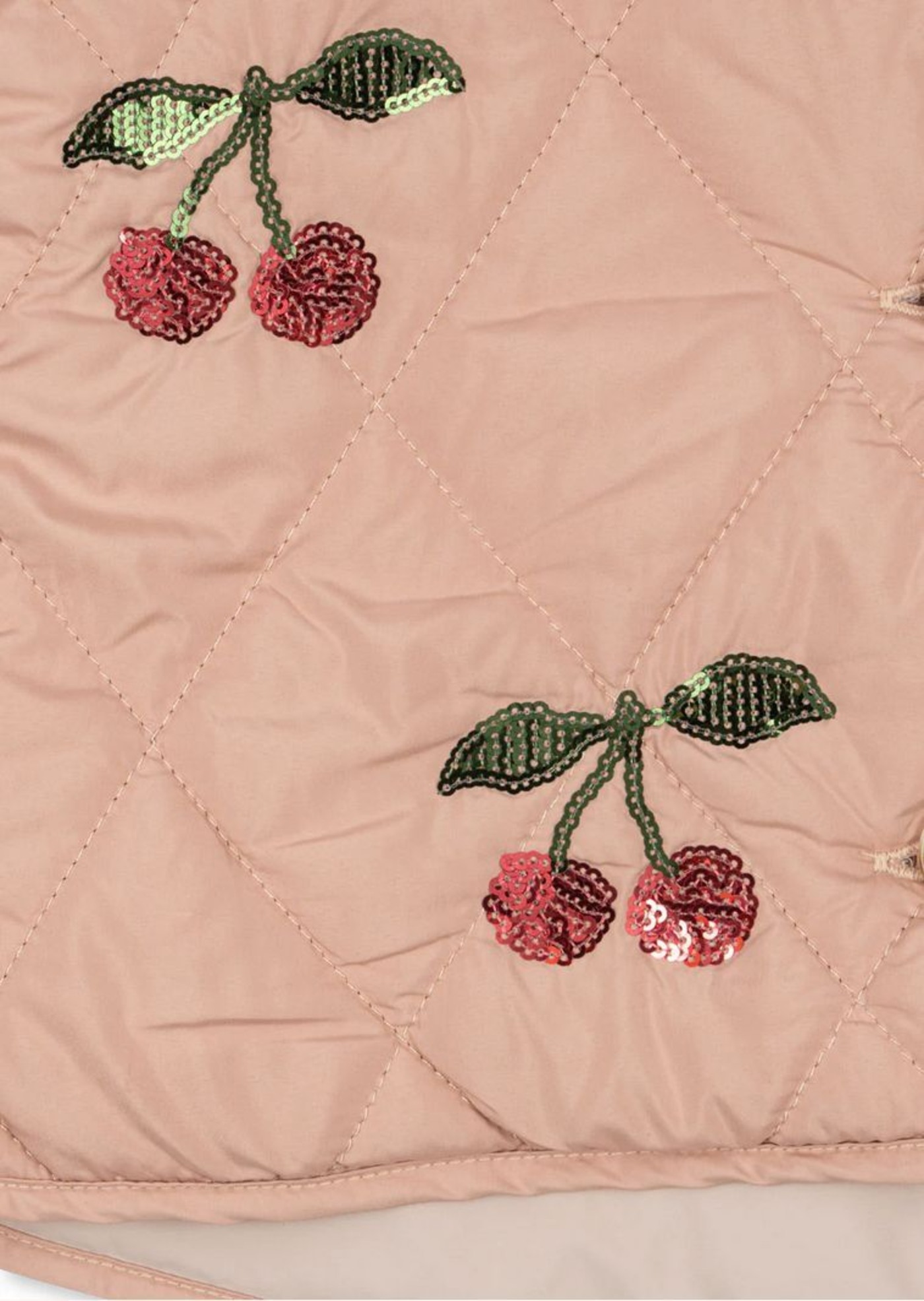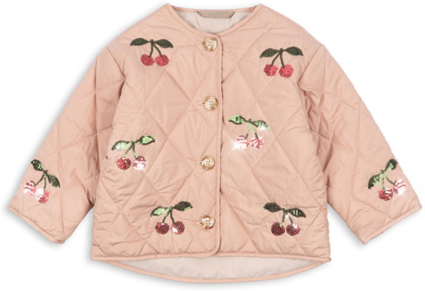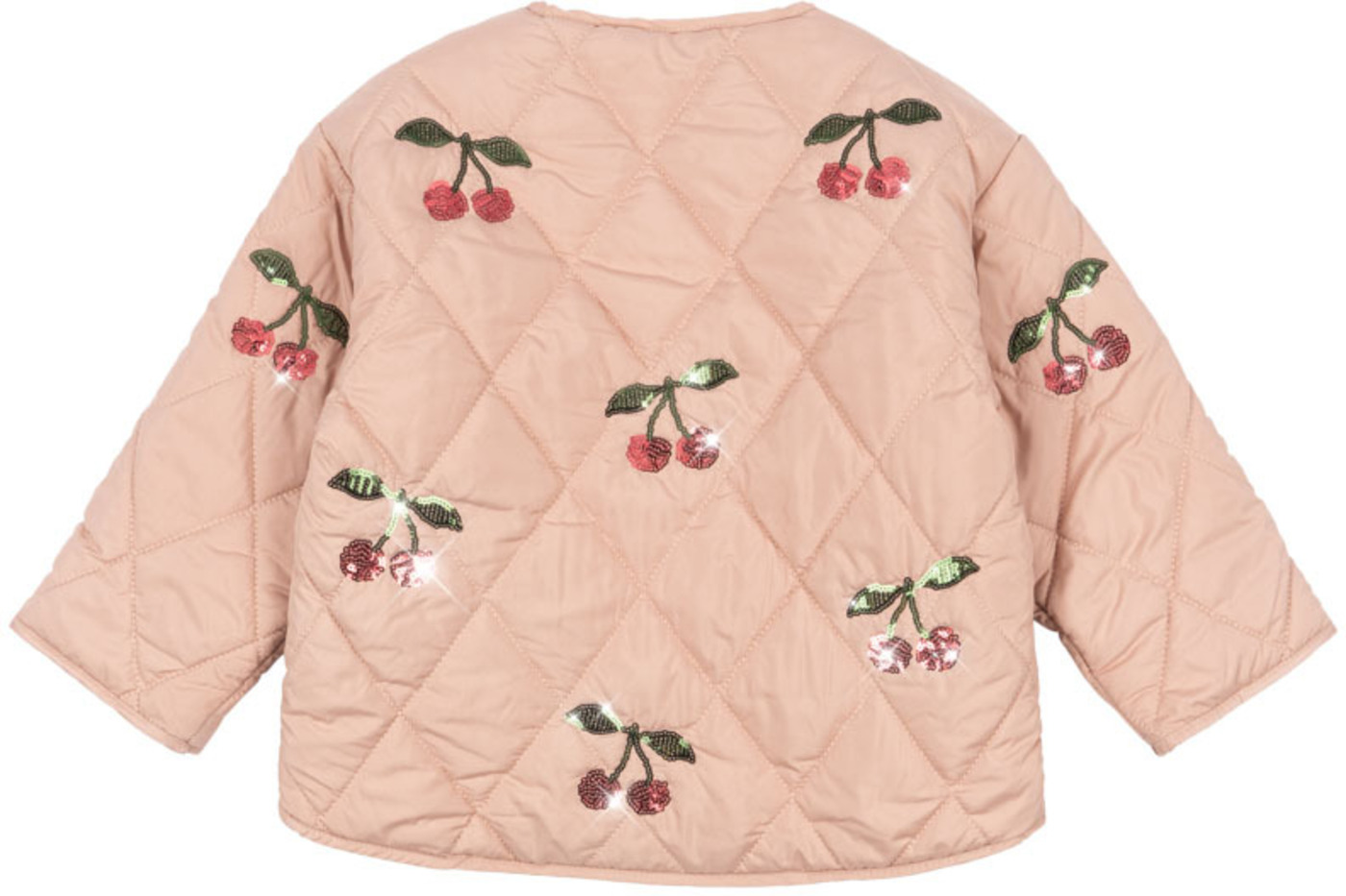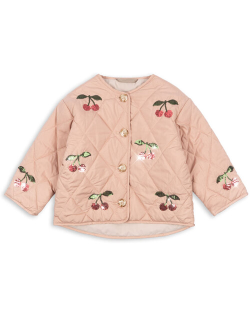 Leicht und mit funkelnden Paillettenkirschen begeistert die Steppjacke 'Flora', die Wärme und Stil in den Tag bringt. ✨🍒