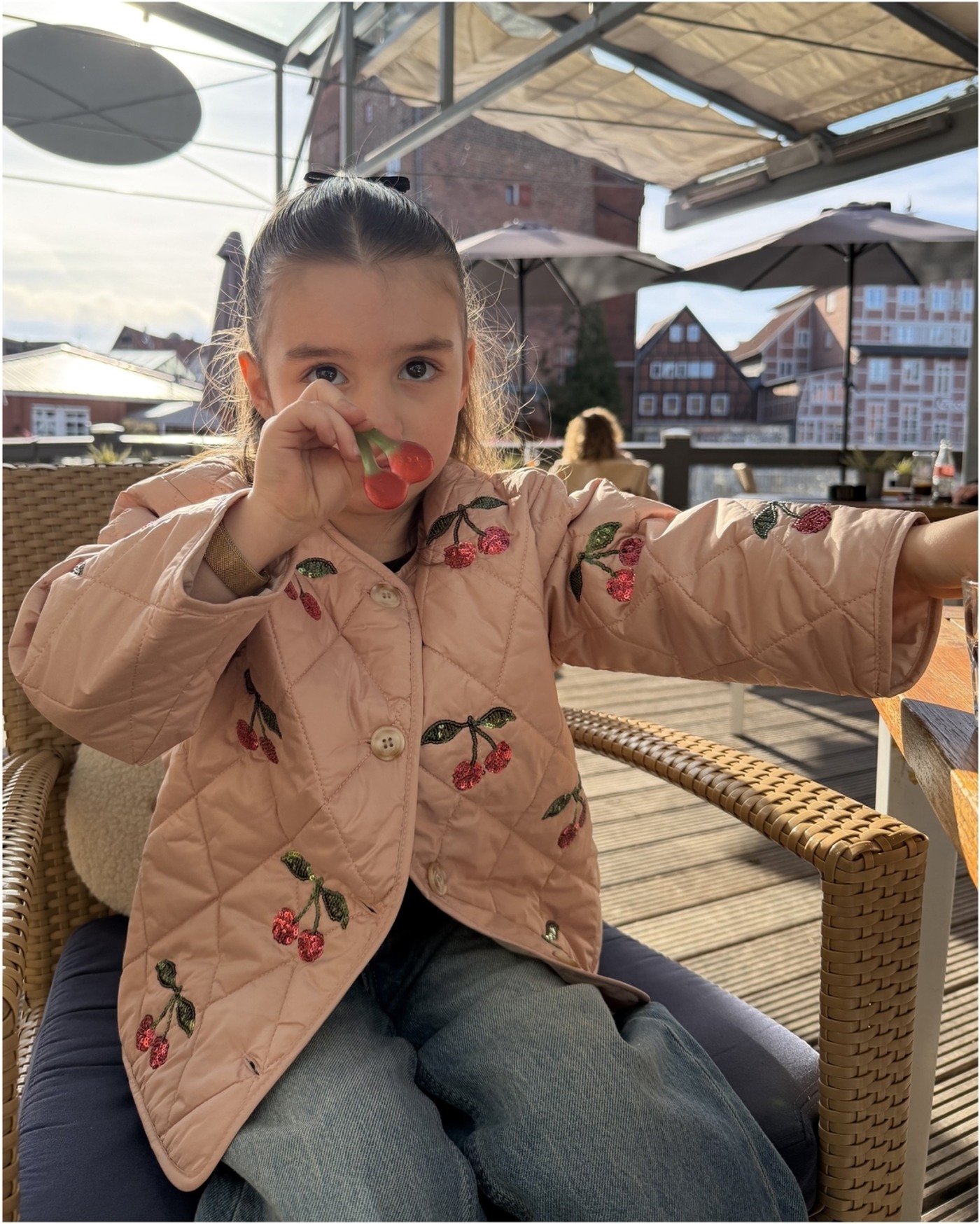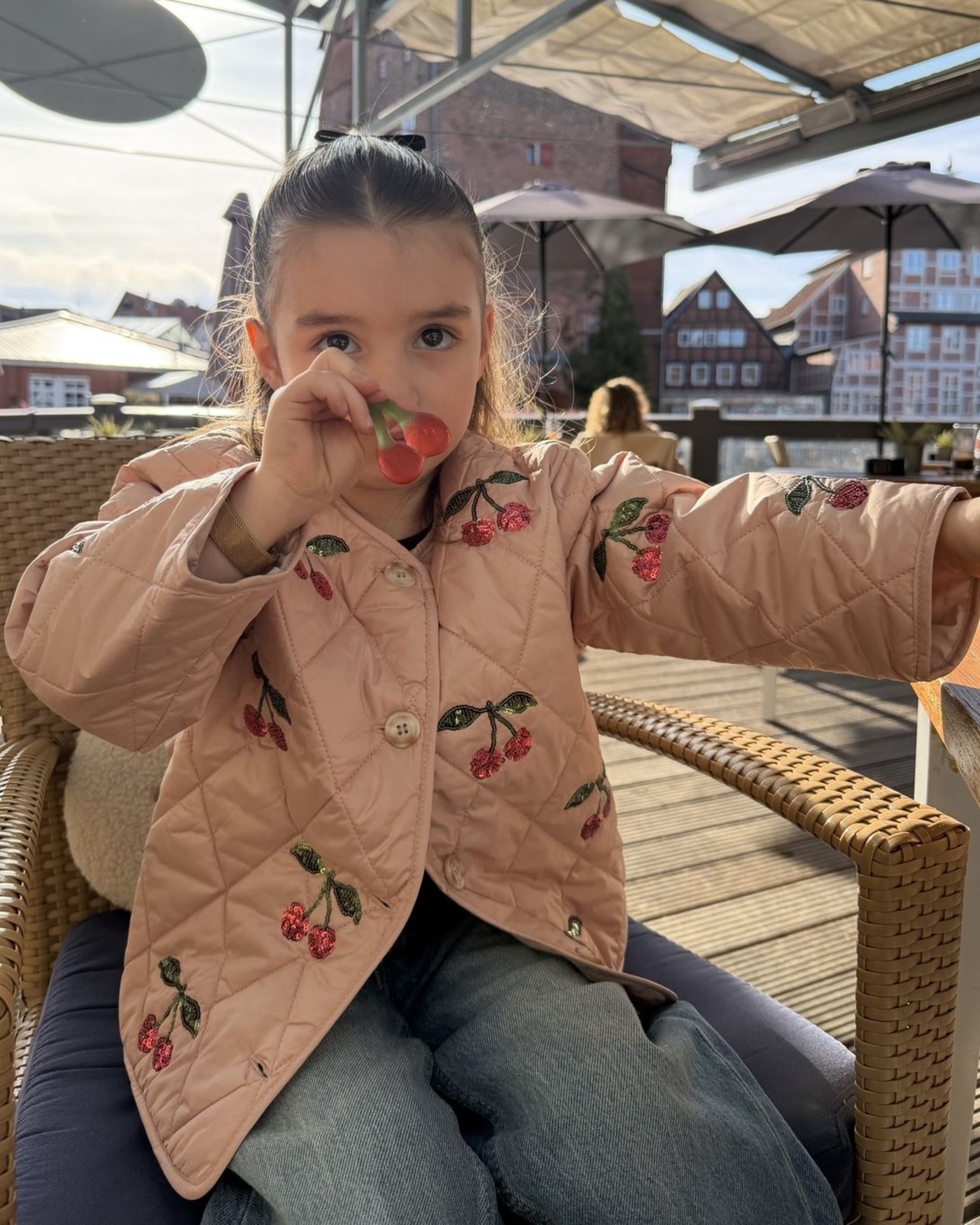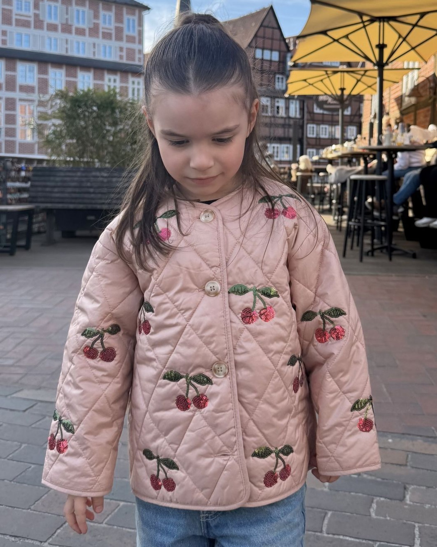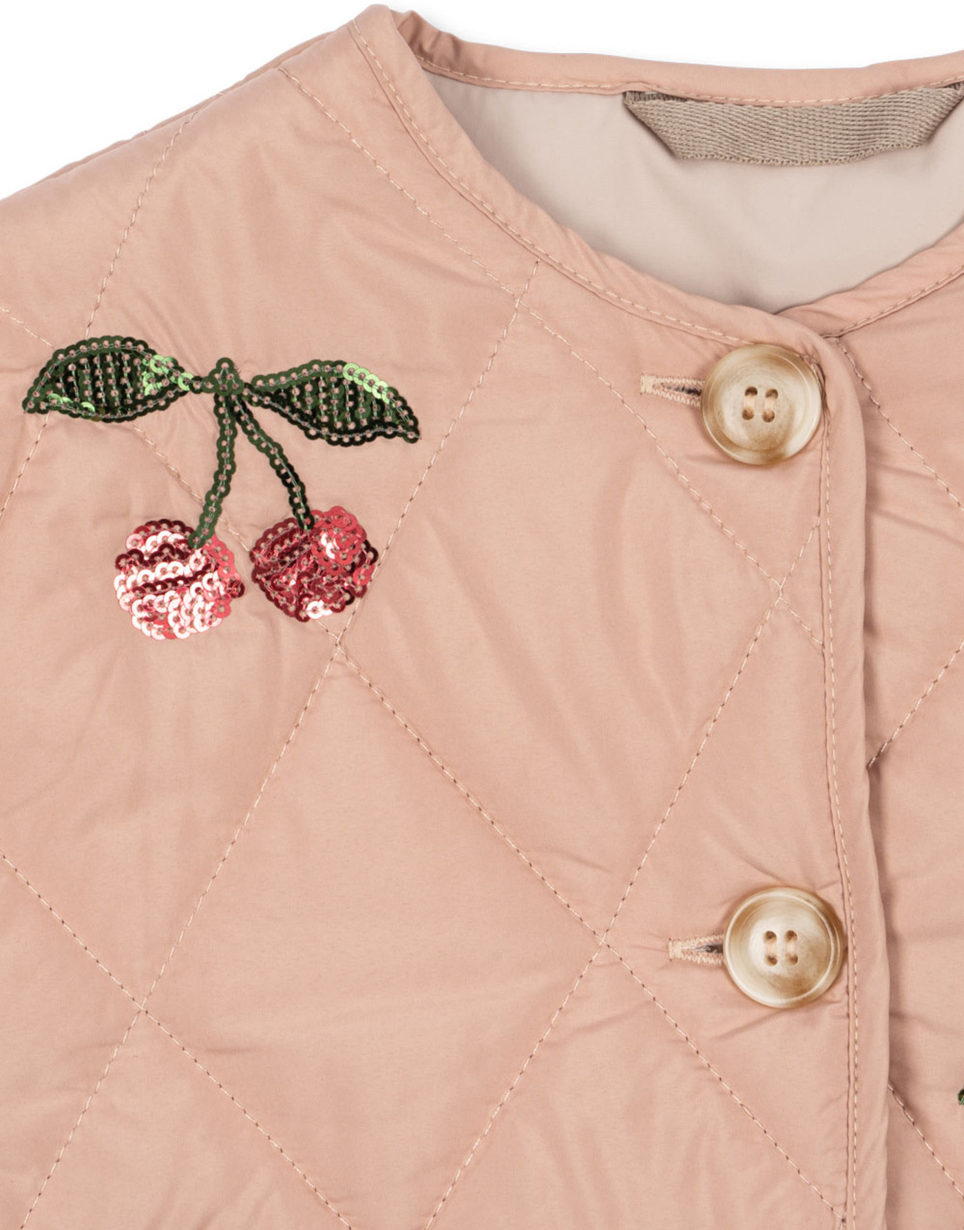 Leicht und mit funkelnden Paillettenkirschen begeistert die Steppjacke 'Flora', die Wärme und Stil in den Tag bringt. ✨🍒