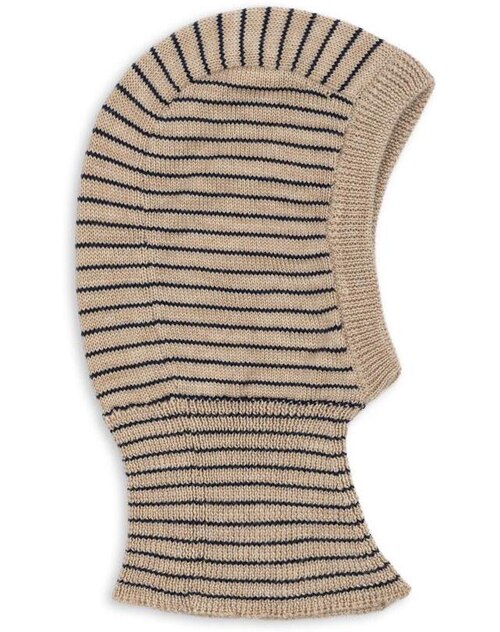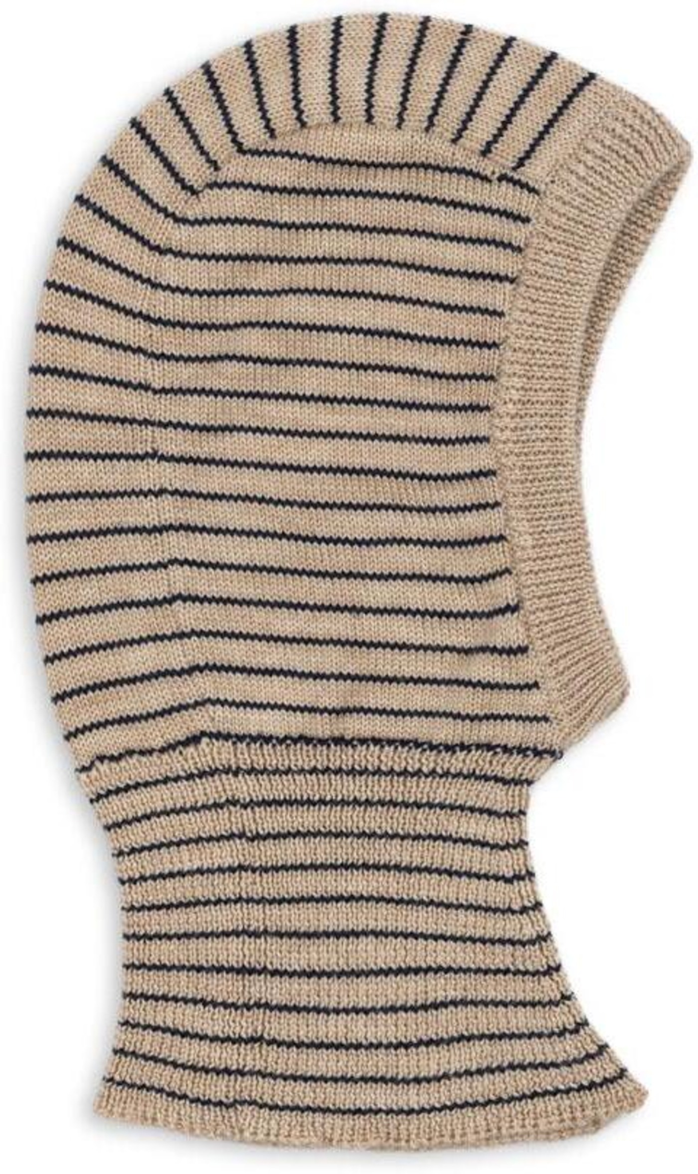 Konges Sløjd Strick-Balaclava/Schlupfmütze 'Louli' aus 100 % Merinowolle - Stripe Bluie