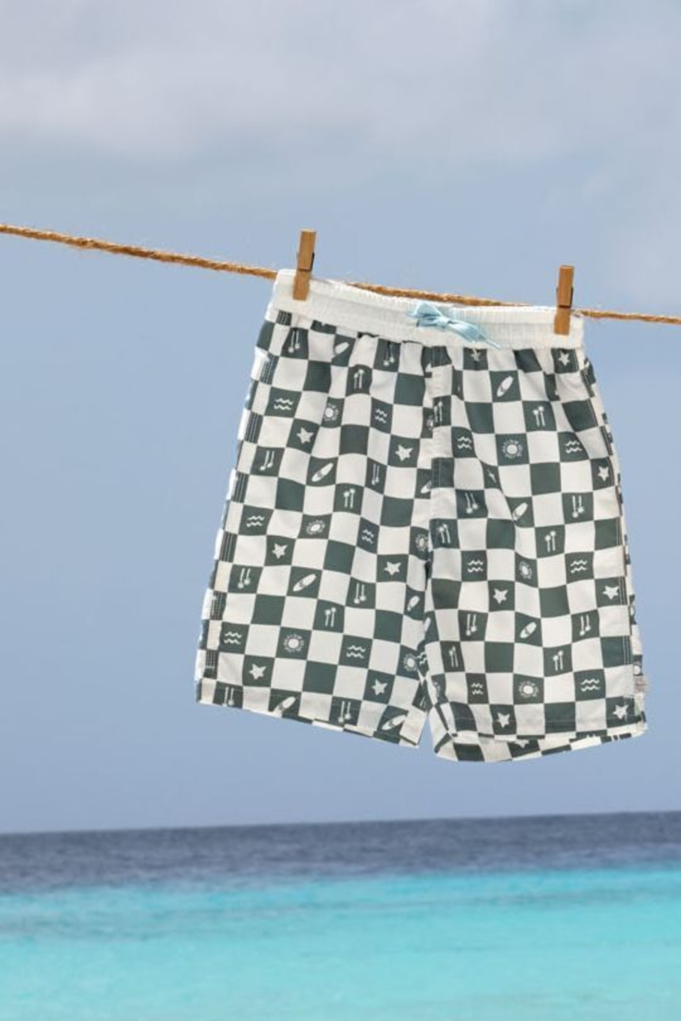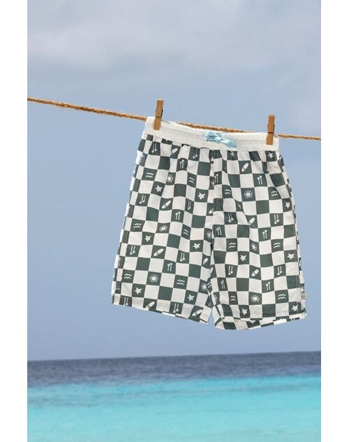 Lässig Bade-/Schwimmshorts mit UV 80 kariert - Deep Olive/Sea Salt