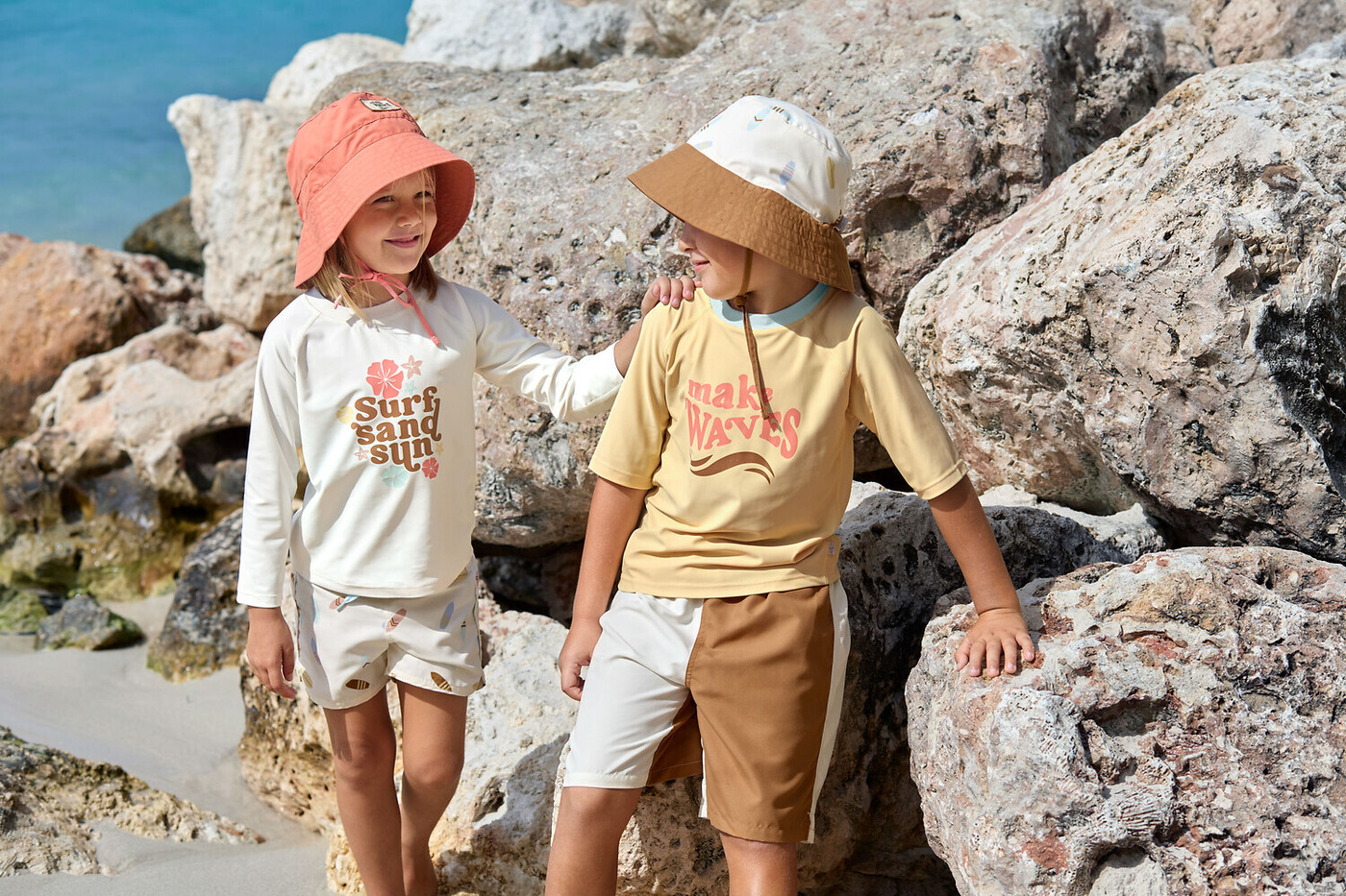 - Schutz vor UV-Strahlung an Land oder im Wasser in Kombination mit Sonnencreme