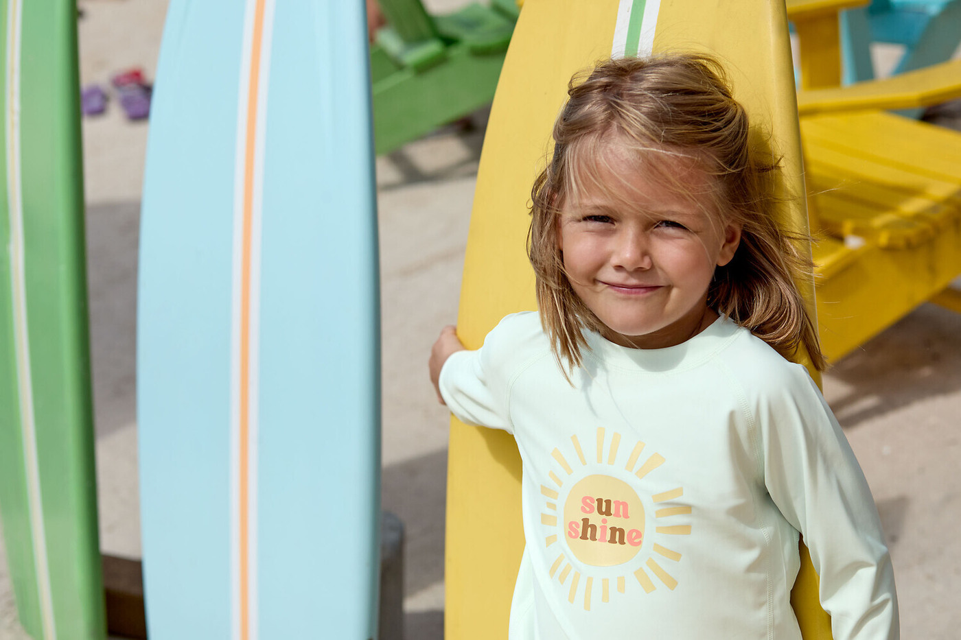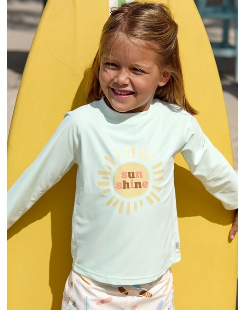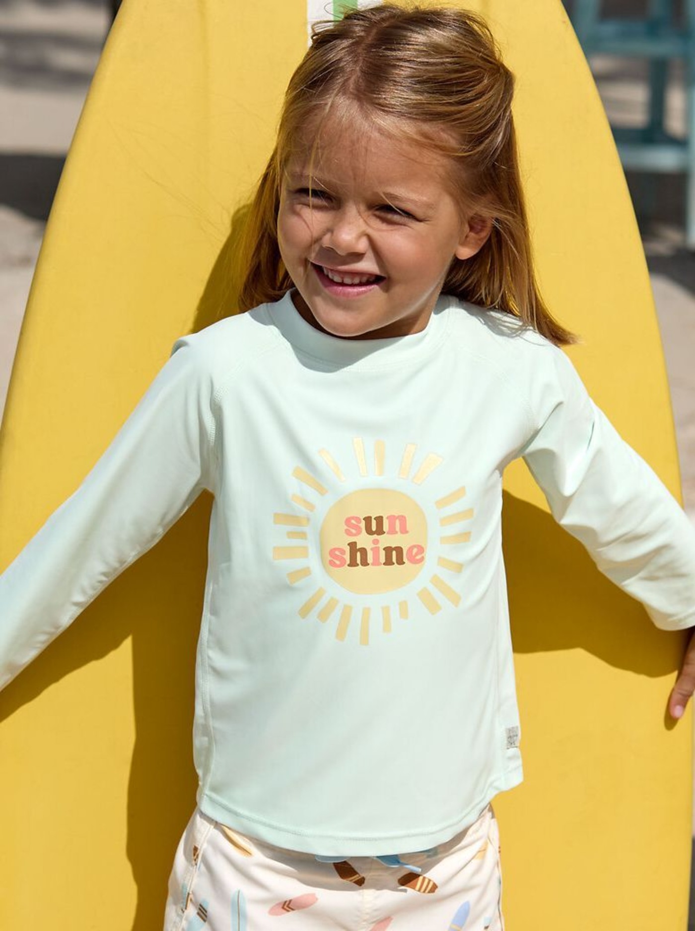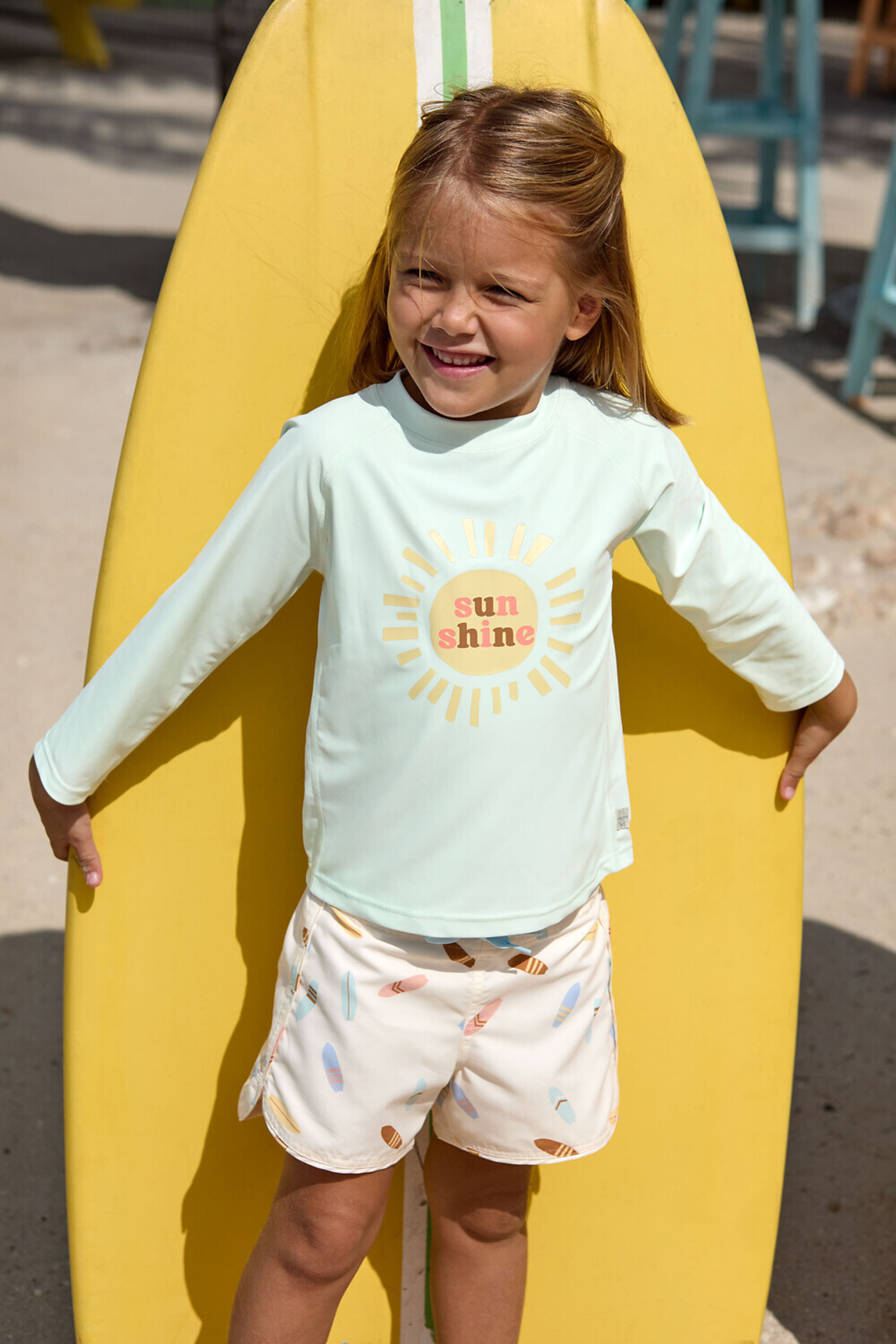 Das langärmlige Kinder-T-Shirt "Sunshine" mit UV-Schutz 60 kommt mit einem tollen Print und extra weichem Stoff.