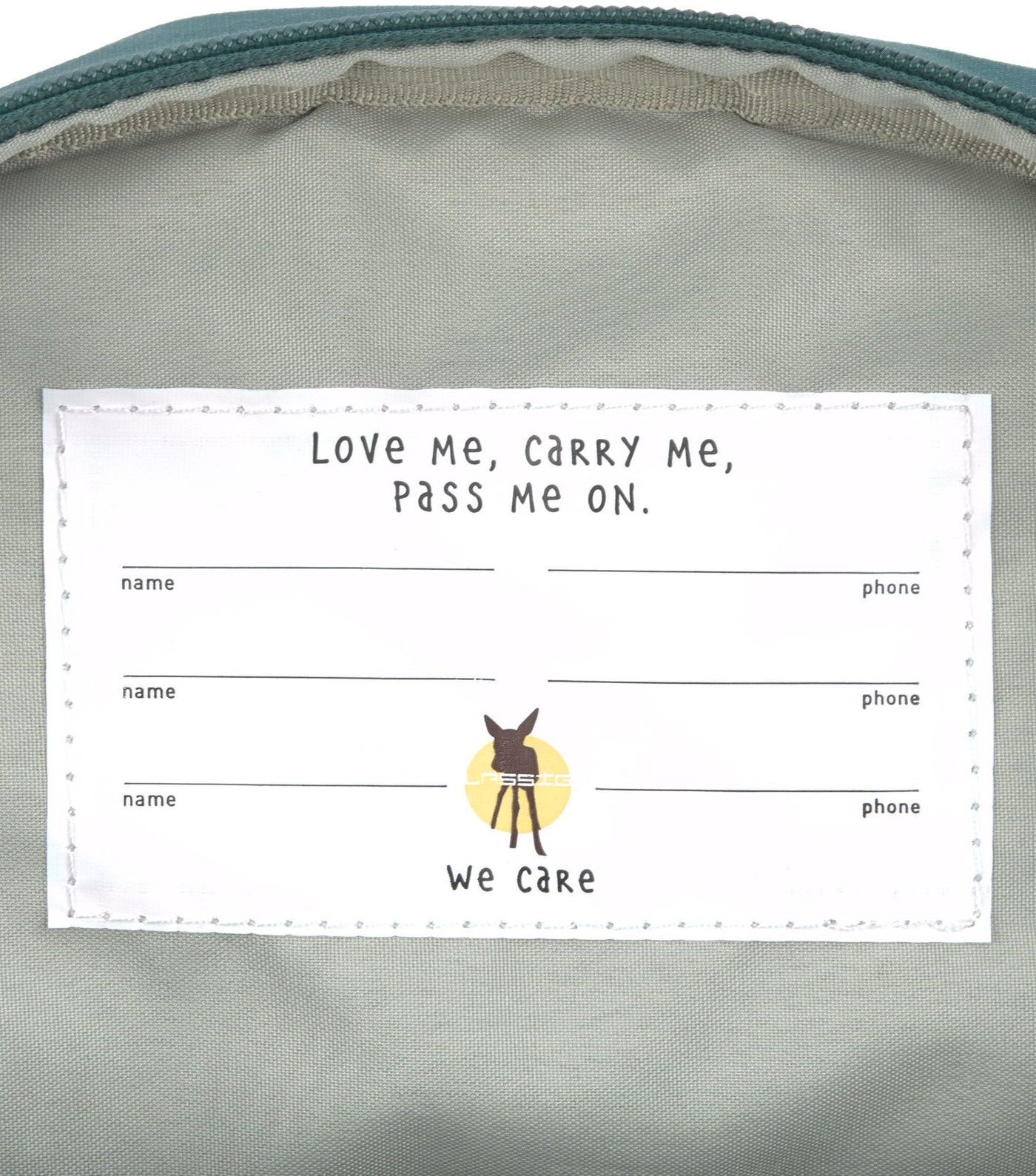 Ein Namensschild auf der Innenseite des Rucksacks schließt Verwechslungen aus.