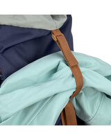 Der untere Teil des Rucksacks besteht aus beschichtetem, abwischbarem Material, das sich schnell und einfach reinigen lässt, sobald man wieder drinnen ist.