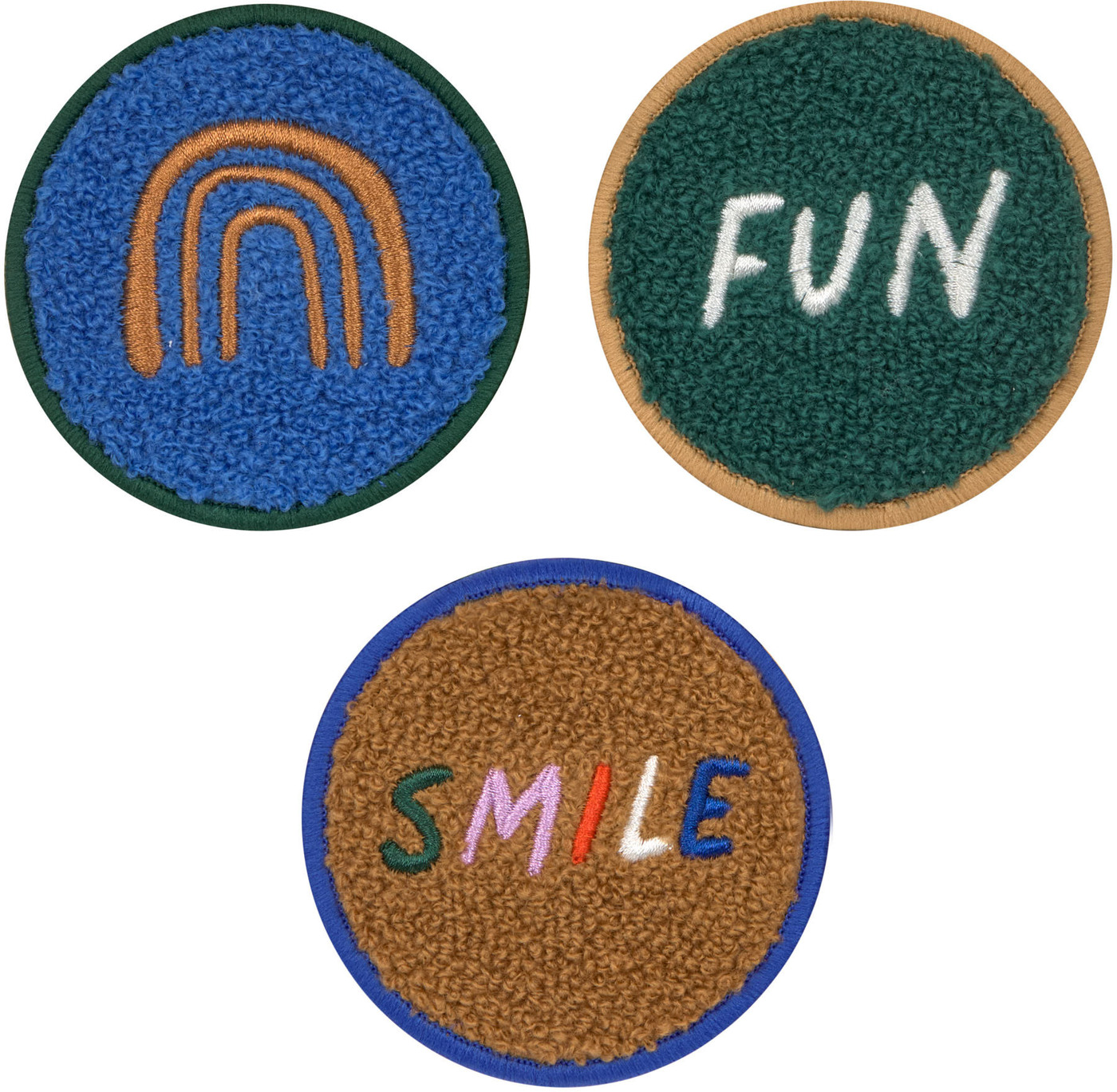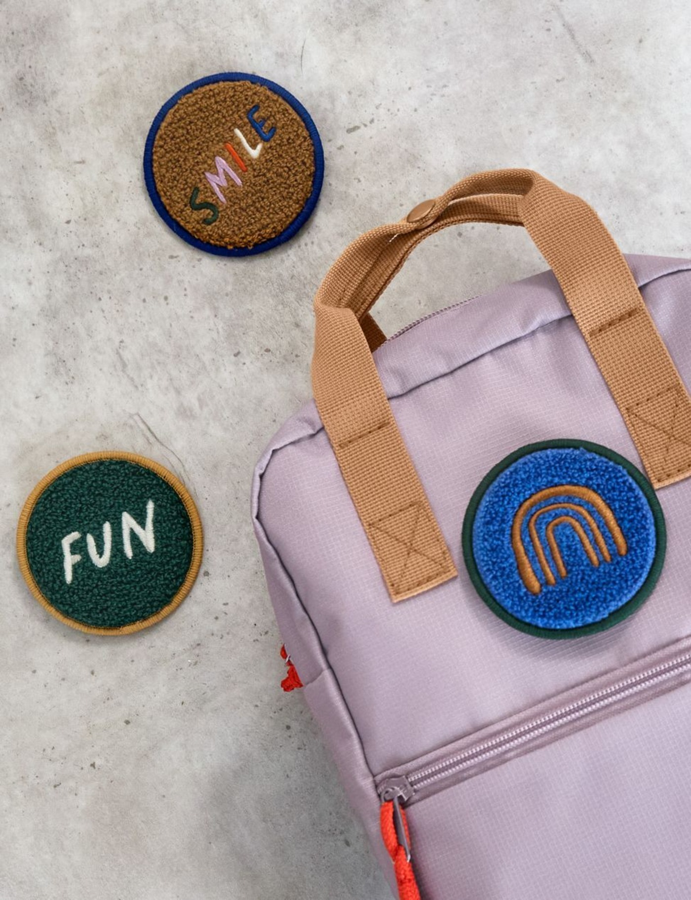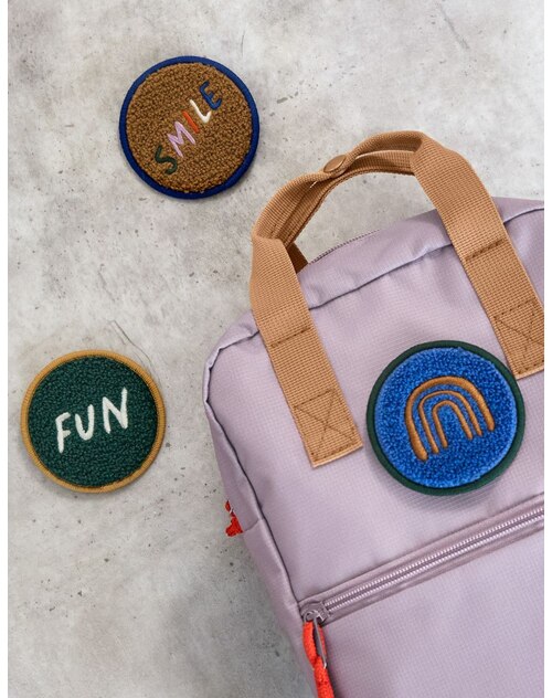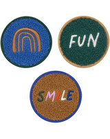 Mit dem niedlichen 3er Patch Set Smile Fun werden Kinderrucksäcke und Taschen mit Schlaufen zu ganz besonderen Begleitern.