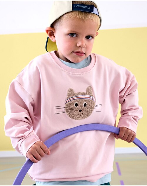 Lässig Pullover/Sweater mit Frottierstickerei aus Bio-Baumwolle - Cat Cloud Pink 💗