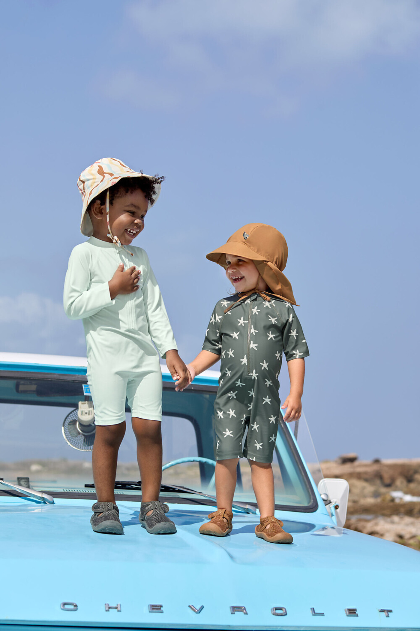 Kleine Wellenreiter aufgepasst! Der wendbare Lässig Kinder Sonnenhut schützt mit einem UV-Schutz 80 den empfindlichen Kopf der Kleinen und sorgt so für unbeschwerten Badespaß.