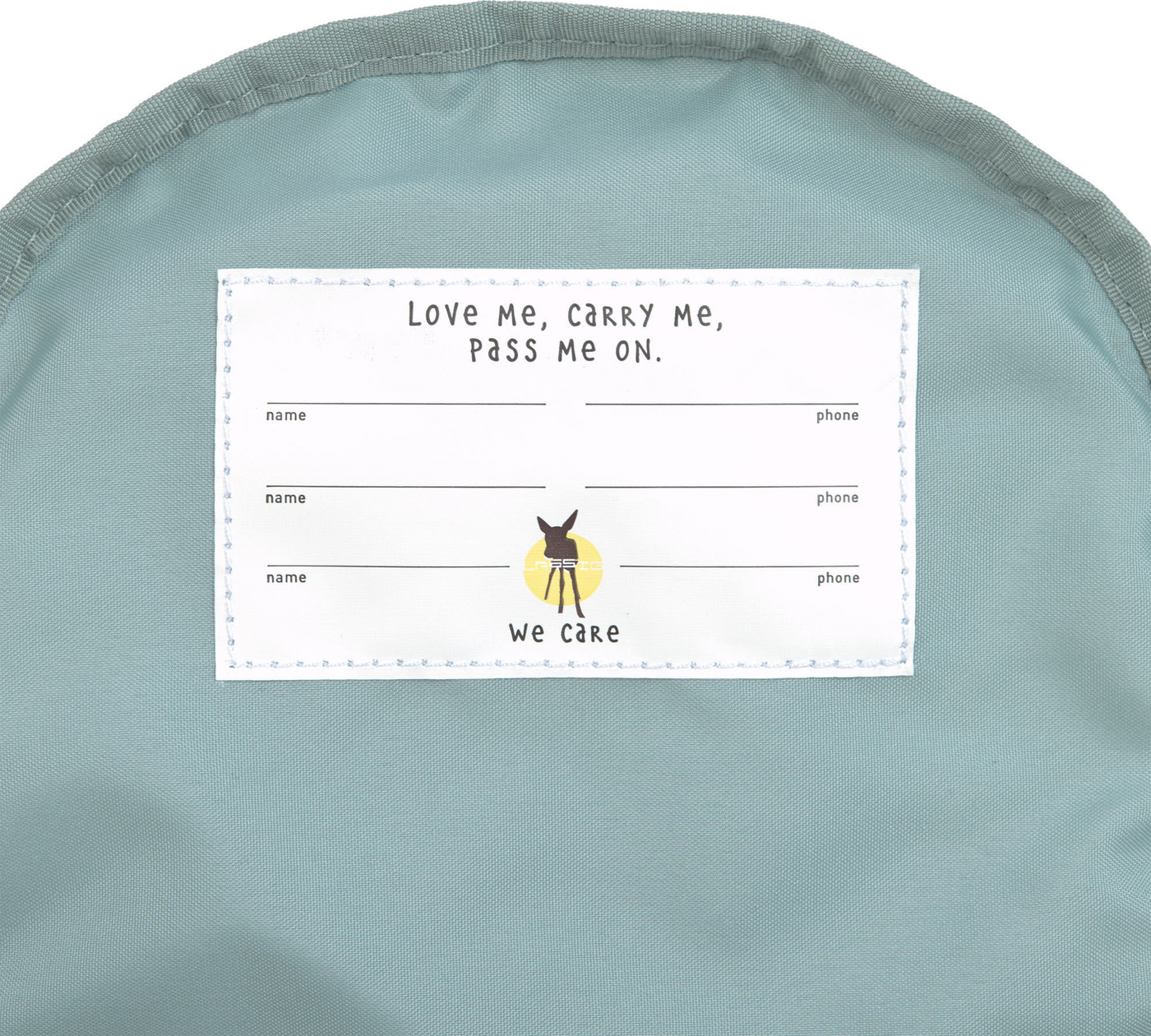 Ein Namensschild auf der Innenseite des Rucksacks schließt Verwechslungen aus.
