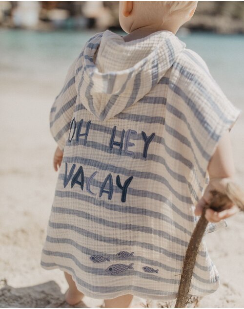Leevje Bade-Poncho aus Bio-Baumwoll-Musselin - Blue Stripes