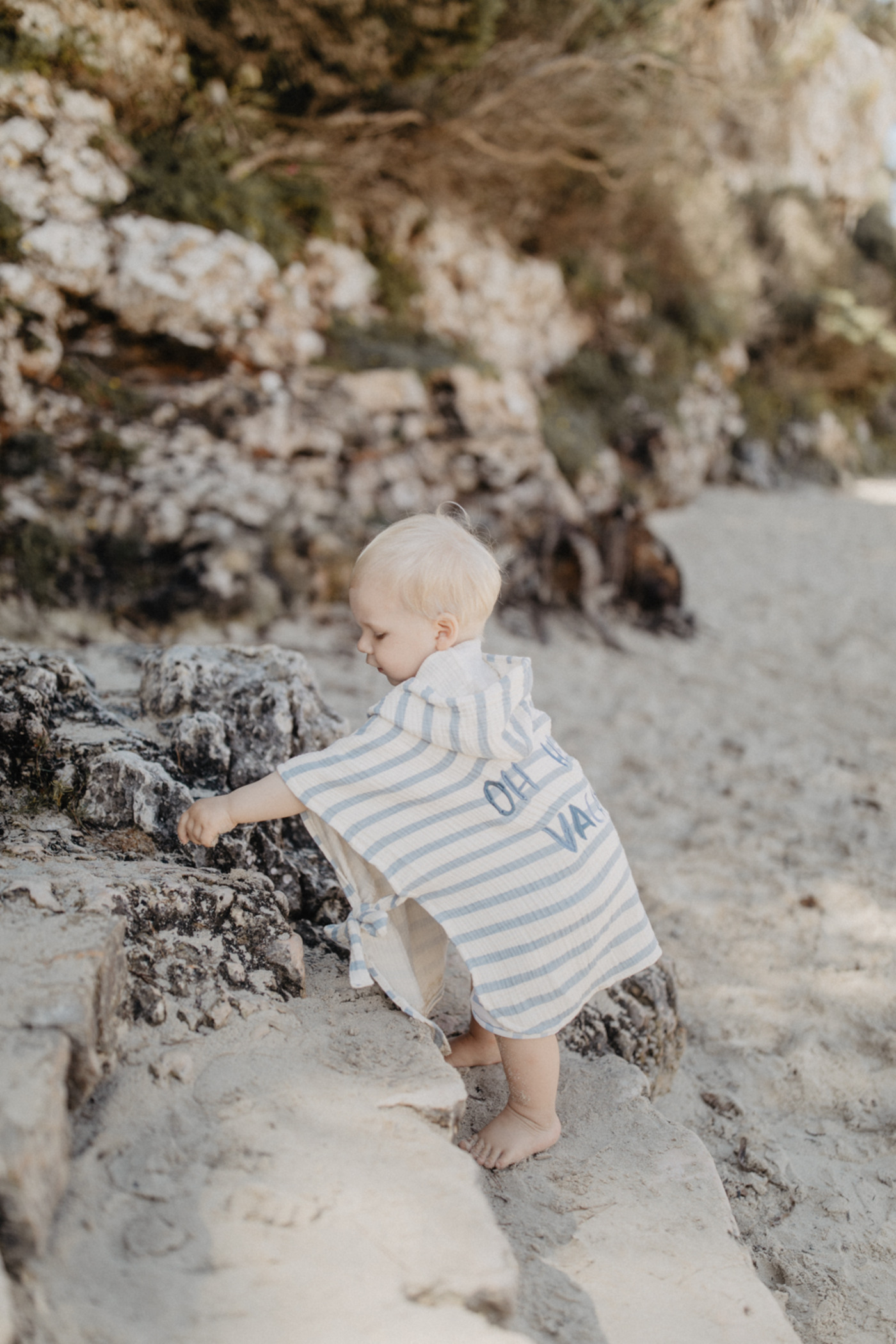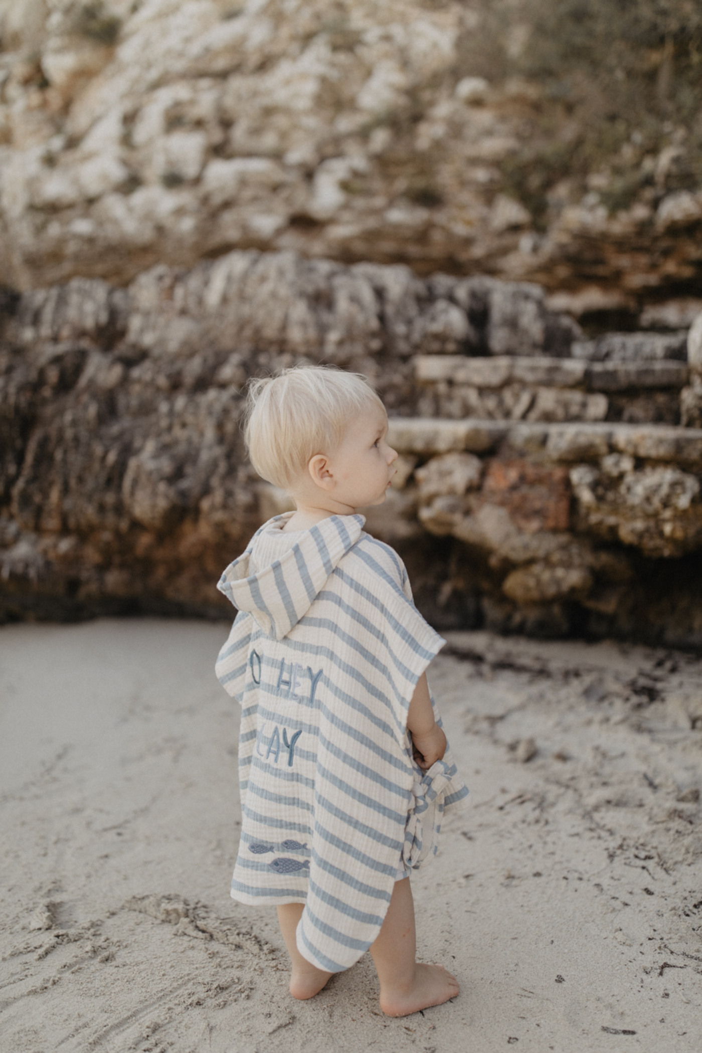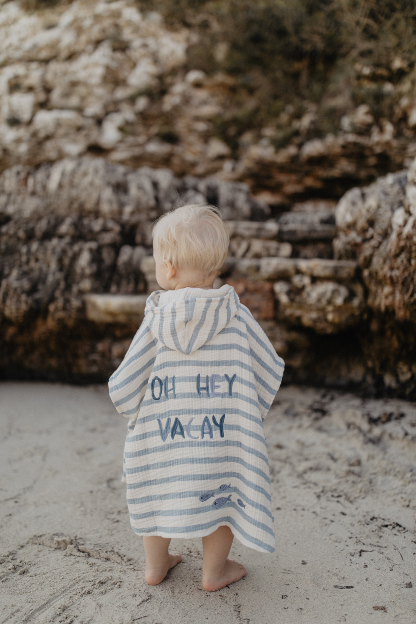 Liebevolle Stickereien auf Vorder- und Rückseite machen den Poncho zu einem besonderen, kindgerechten Lieblingsstück 🐳🪸