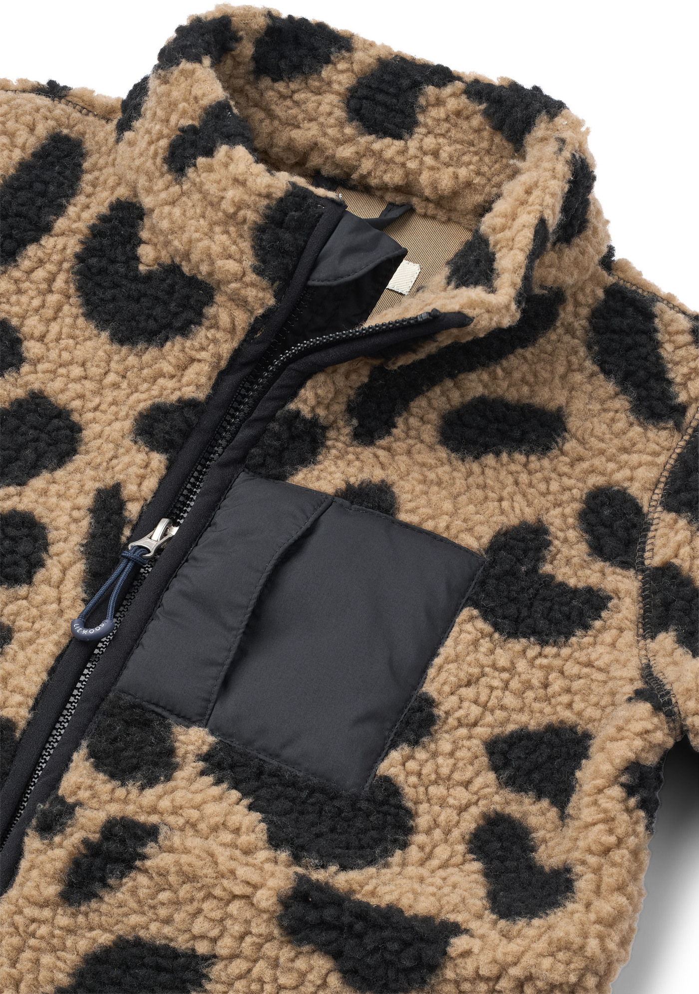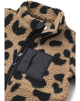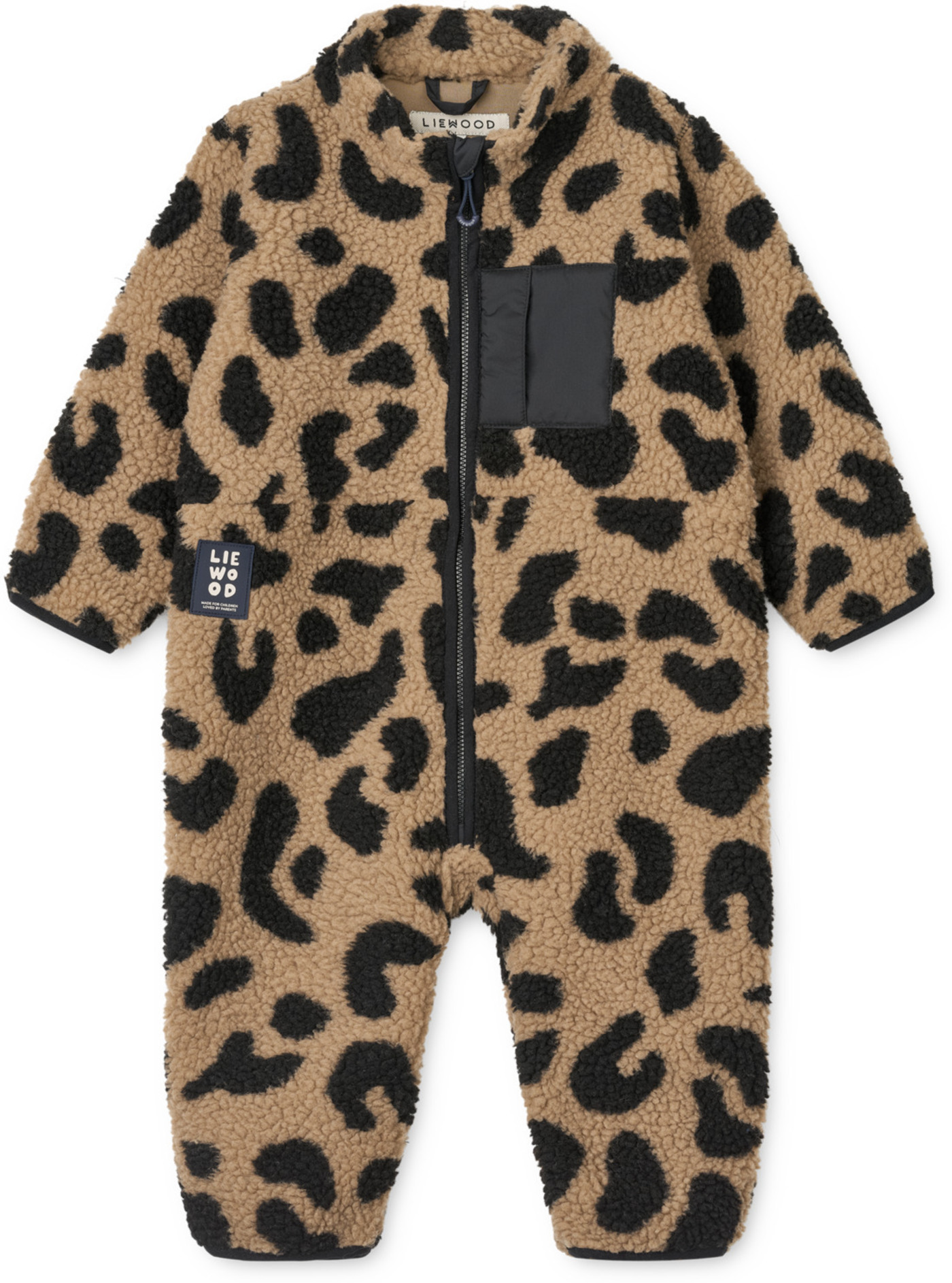 Dank des praktischen Reißverschlusses mit innerer Windschutzleiste und der umstülpbaren Bündchen an Händen und Füßen ist der Overall im coolen Leo-Look nicht nur stylisch, sondern auch funktional und komfortabel.