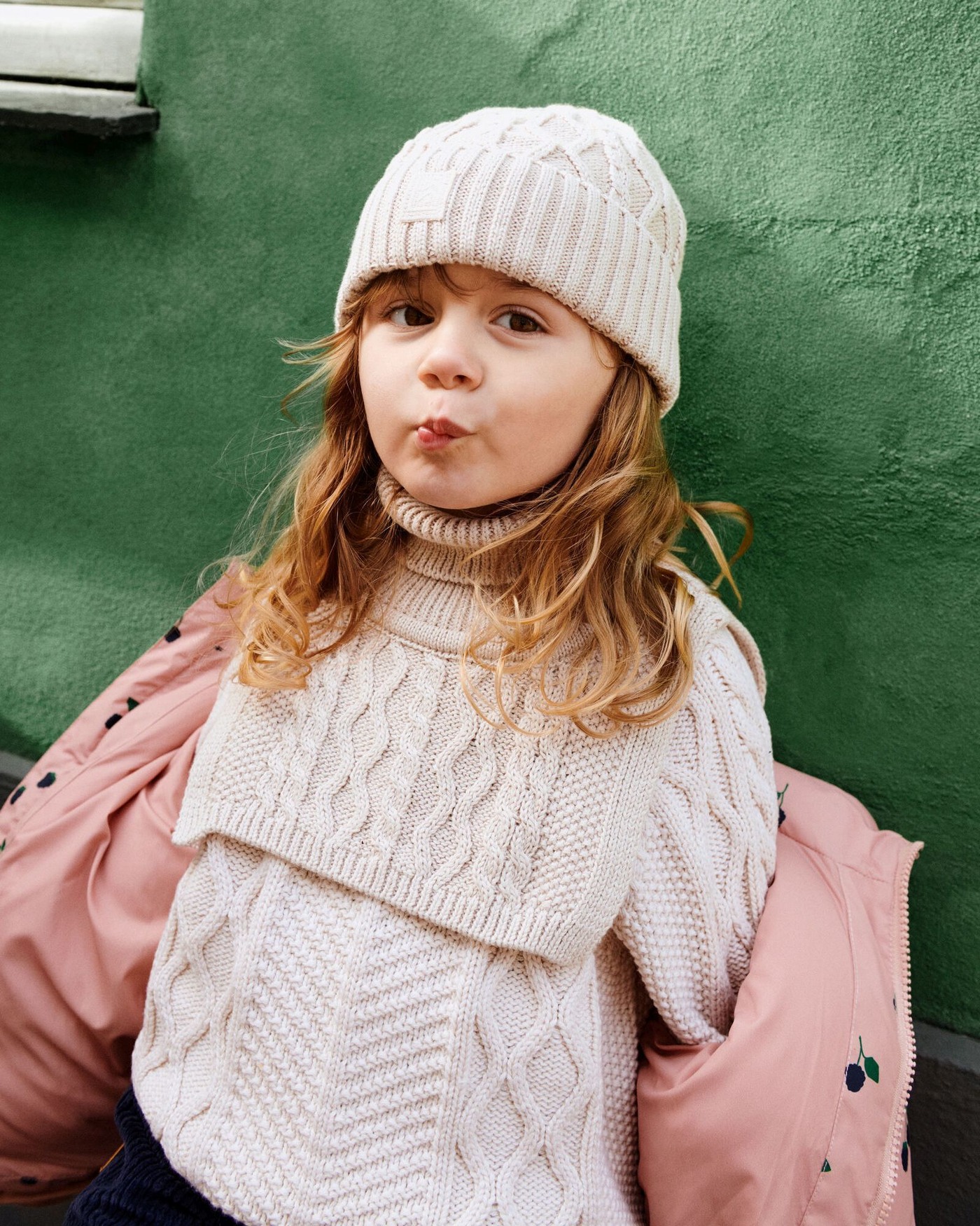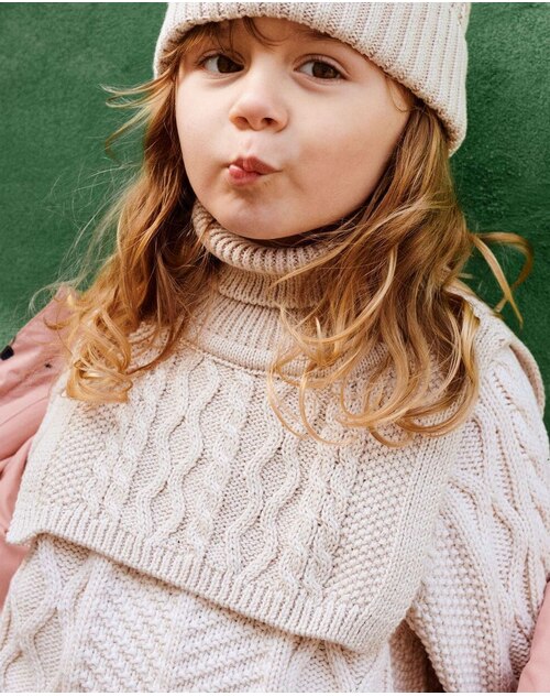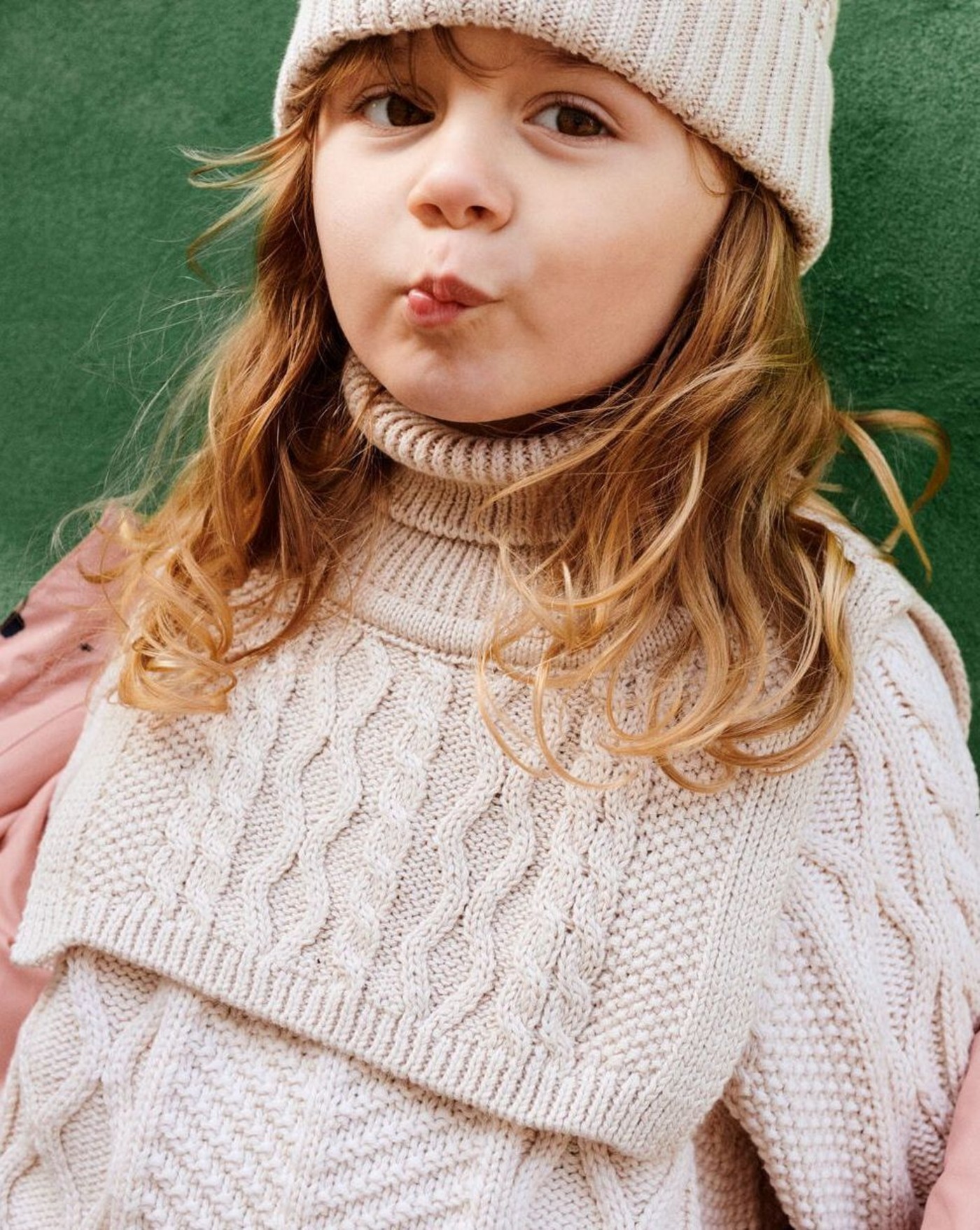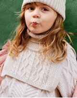 Der Halswärmer besticht durch einen gerippten Stehkragen, der den