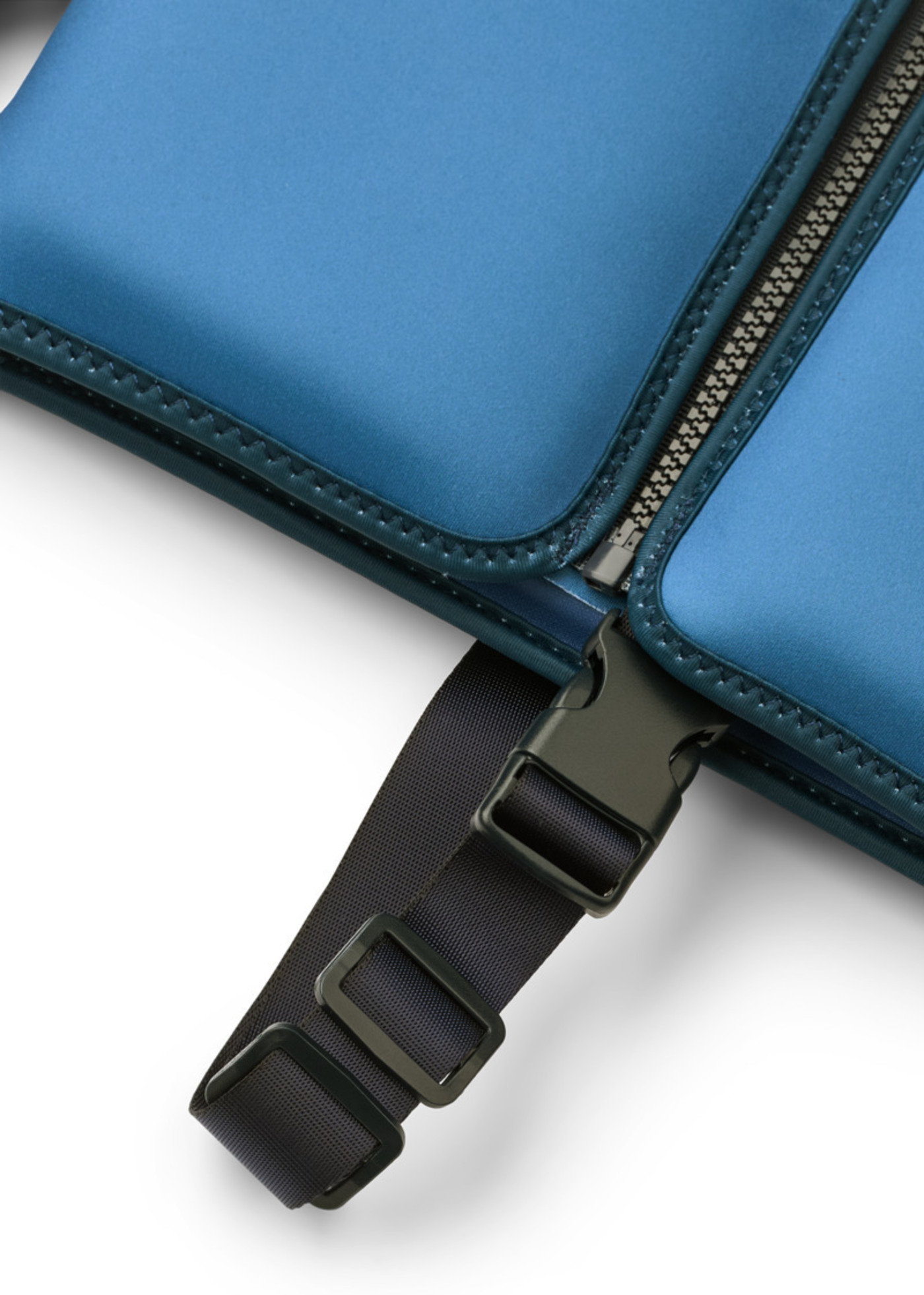 Damit die Weste an Ort und Stelle bleibt, ist sie mit einem Reißverschluss auf der Vorderseite, einem matten, verstellbaren Gurtband zwischen den Beinen und einer gummierten Schnalle ausgestattet. 👍