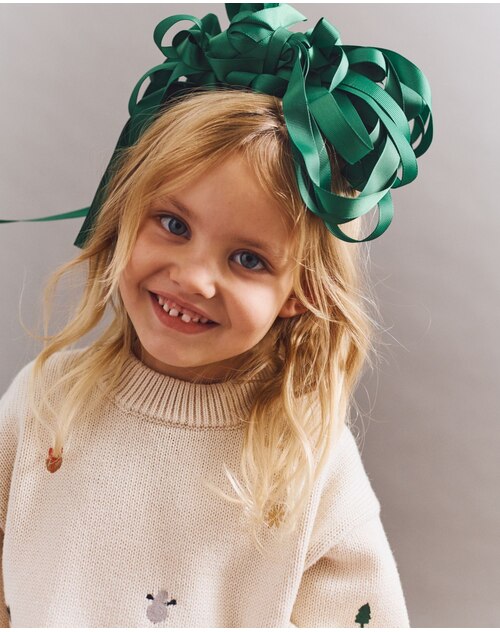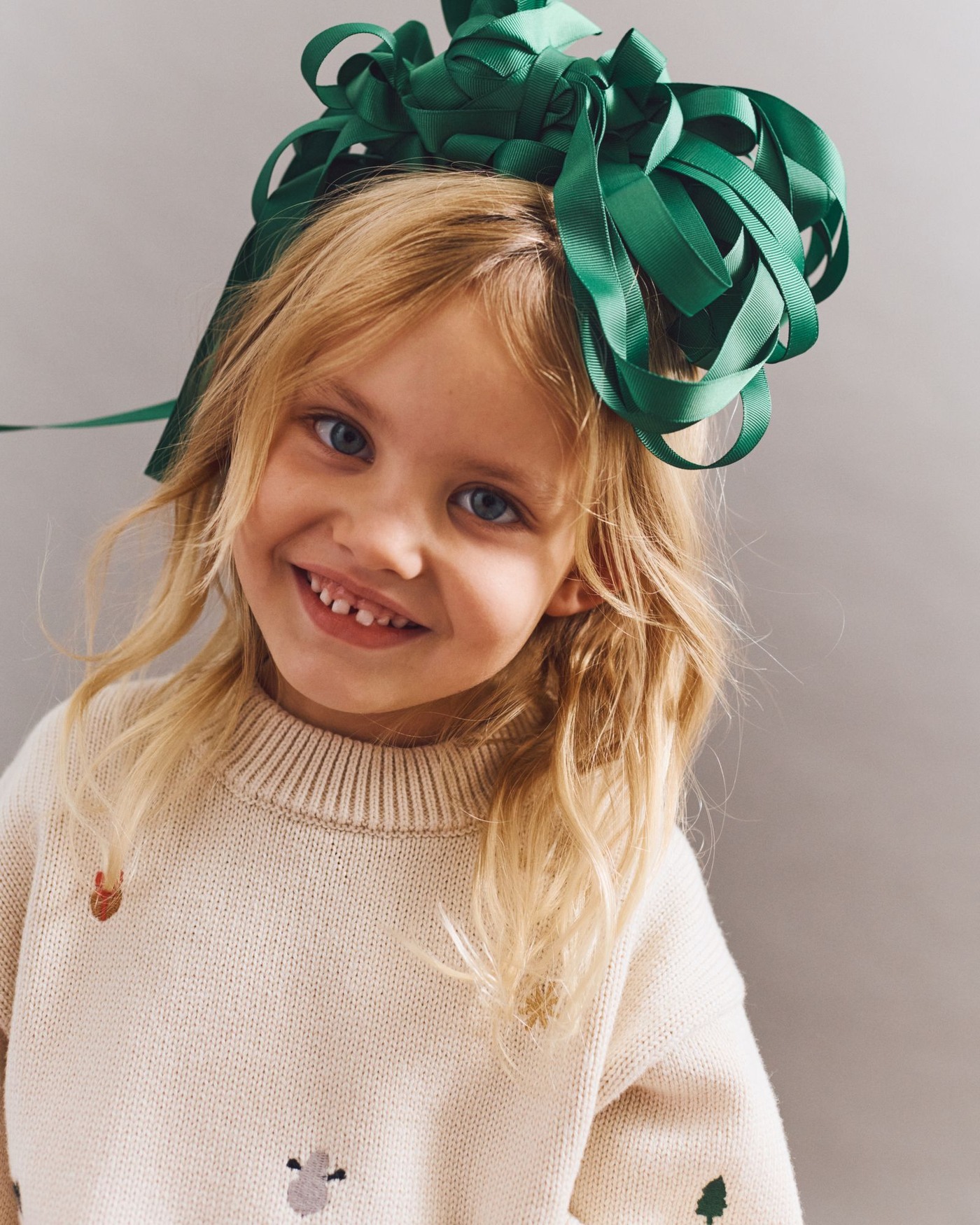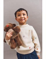 Der hübsche Strickpullover 'Orlane' sorgt für edlen Winterzauber - Sorgfältig bestickt mit kleinen Schleifen, Weihnachtsmützen, Schneemännern, Sternen, Bretzeln und Tannenbäumen entzückt er Kids sowie Eltern 🎄 🎇