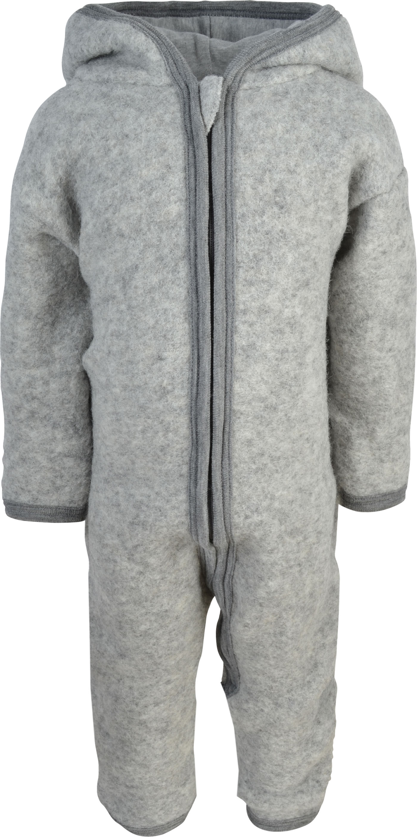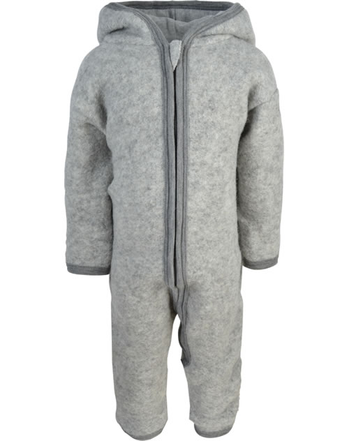 Warmer Wollfilzanzug in hellgrau mit Arm- und Beinumschlag für Babys von LILANO. Ein praktisches Detail ist der lange Reißverschluss, der das An- und Ausziehen erleichtert. Die Beine und Arme lassen sich umstülpen und dienen so als zusätzliche Wärme-Schicht an den Füßchen und Händchen. Das ökologisch hochwertige Material des Kleidungsstücks beeinflusst das Hautklima positiv und sorgt für ein angenehmes Tragegefühl.