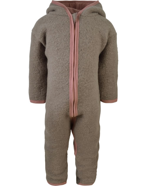 Warmer Wollfilzanzug mit Arm- und Beinumschlag für Babys von LILANO. Ein praktisches Detail ist der lange Reißverschluss, der das An- und Ausziehen erleichtert. Die Beine und Arme lassen sich umstülpen und dienen so als zusätzliche Wärme-Schicht an den Füßchen und Händchen. Das ökologisch hochwertige Material des Kleidungsstücks beeinflusst das Hautklima positiv und sorgt für ein angenehmes Tragegefühl.