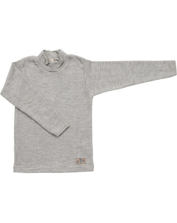 T-Shirt Langarm mit Stehkragen Ringel aus Schurwolle/Seide - Hellgrau