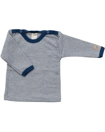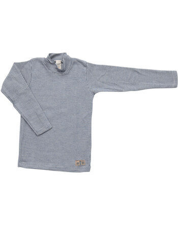 Ringelshirt Stehkragen Langarm Schurwolle/Seide - Marine