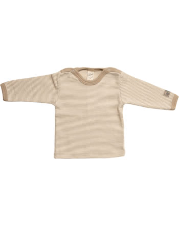 Langarmshirt im Ringel-Look aus Schurwolle/Seide - Sand