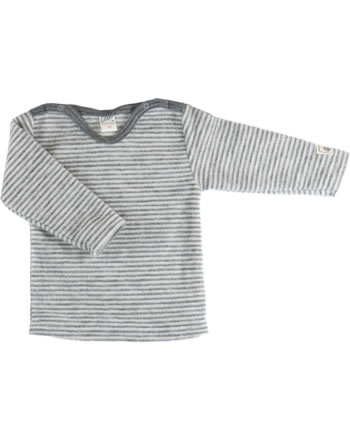 Wickel-Shirt Langarm Ringel Schurwolle hellgrau