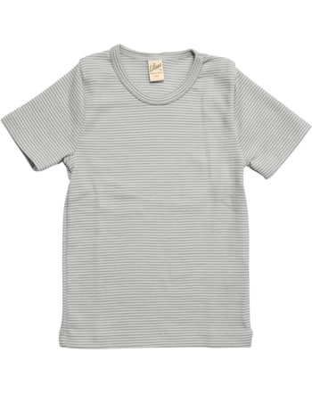 Unterhemd Kurzarm Ringel Schurwolle/Seide hellgrau