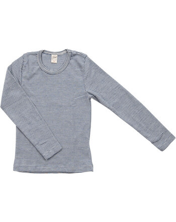 Langarm-Unterhemd im Ringel-Look aus Schurwolle/Seide - Marine