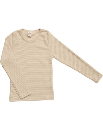 Langarm-Unterhemd im Ringel-Look aus Schurwolle/Seide - Sand