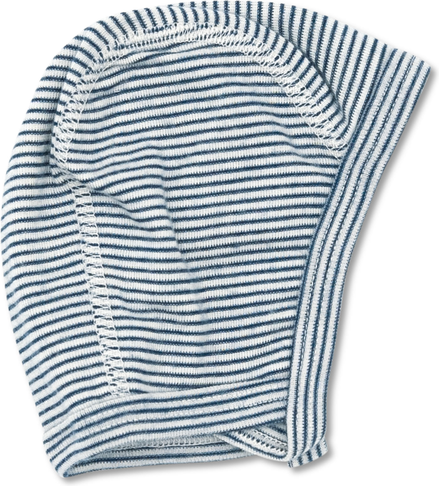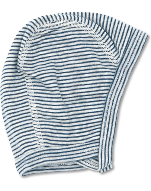Lilano Erstlingsmütze im Ringel-Look aus Schurwolle/Seide - Marine