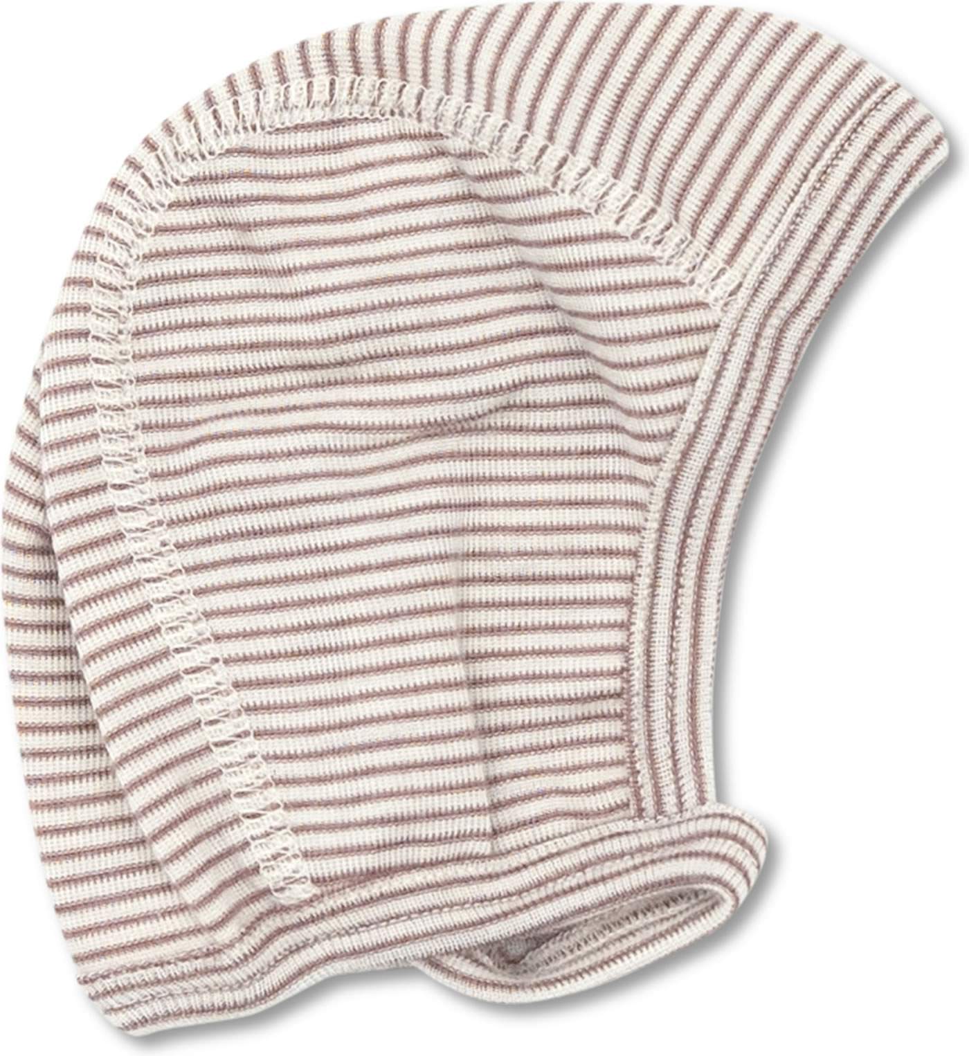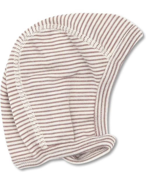 Lilano Erstlingsmütze im Ringel-Look aus Merinowolle/Seide - Mauve