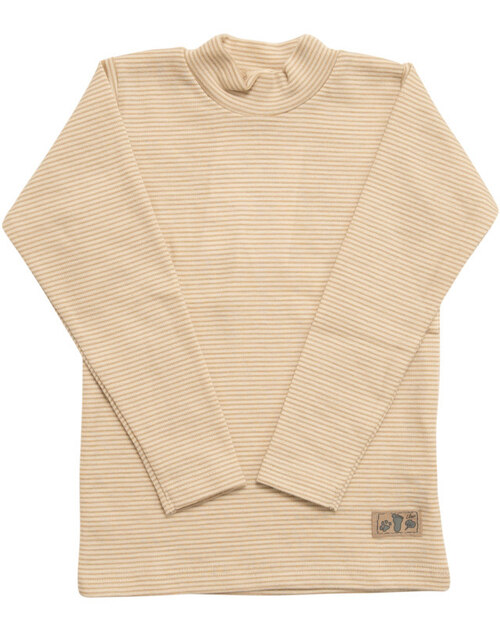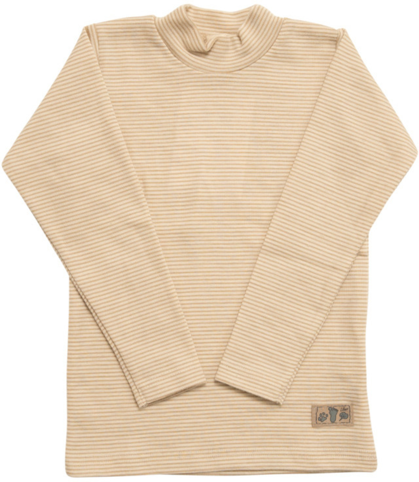 Lilano Kinder-T-Shirt Langarm mit Stehkragen aus Schurwolle/Seide - Sand/Natur