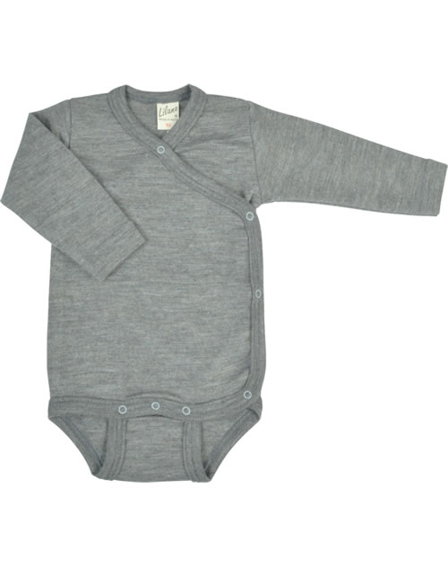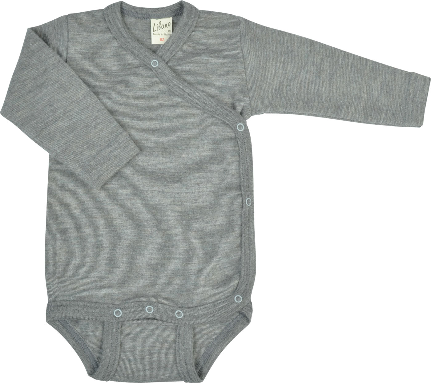 Lilano Langarm-Wickel-Body uni Wolle/Seide - Hellgrau