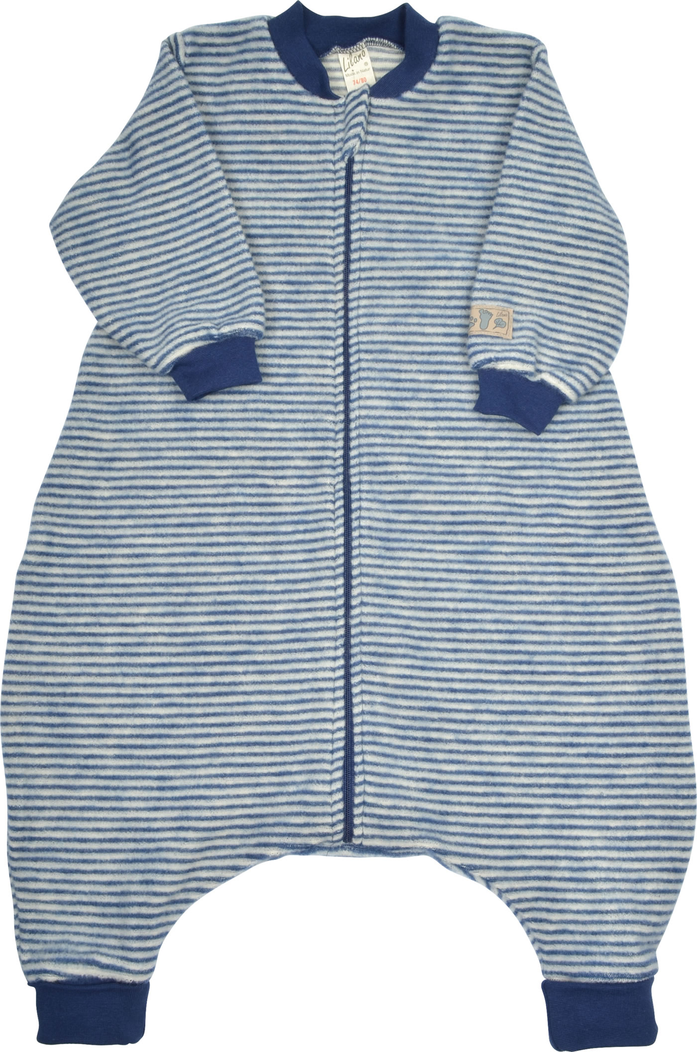farblich abgesetzte Bündchen an Armen und Beinen verleihen dem Schlafsack nicht nur eine hübsche Optik, sondern sorgen auch für einen bequemen Sitz.