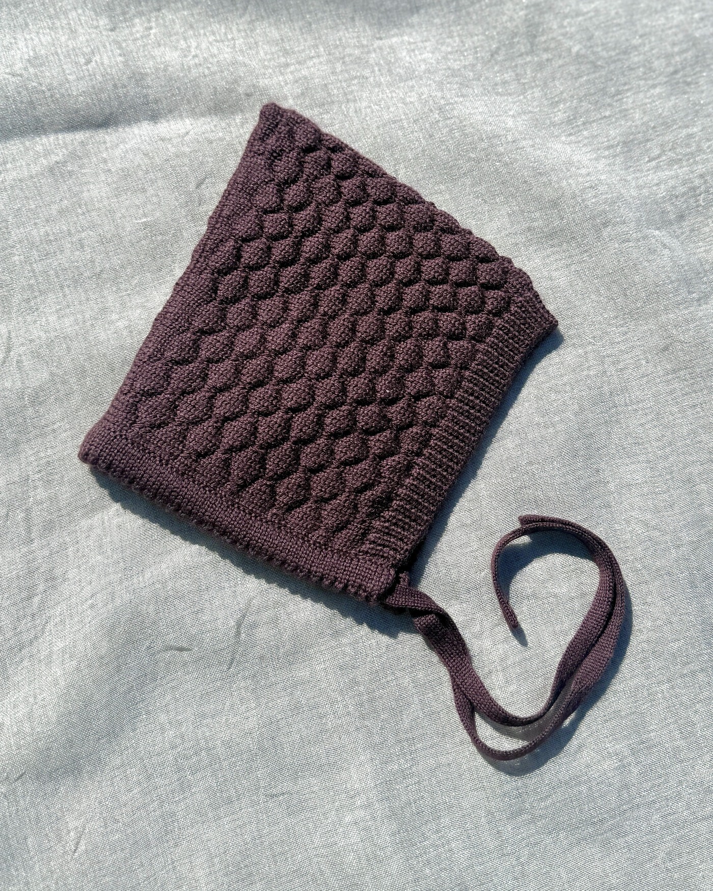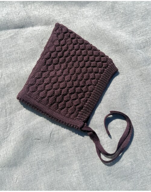 Lille Toni Babymütze 'Ela' mit Bindeband für 0 - 1 Jahre aus Merinowolle - Bordeaux