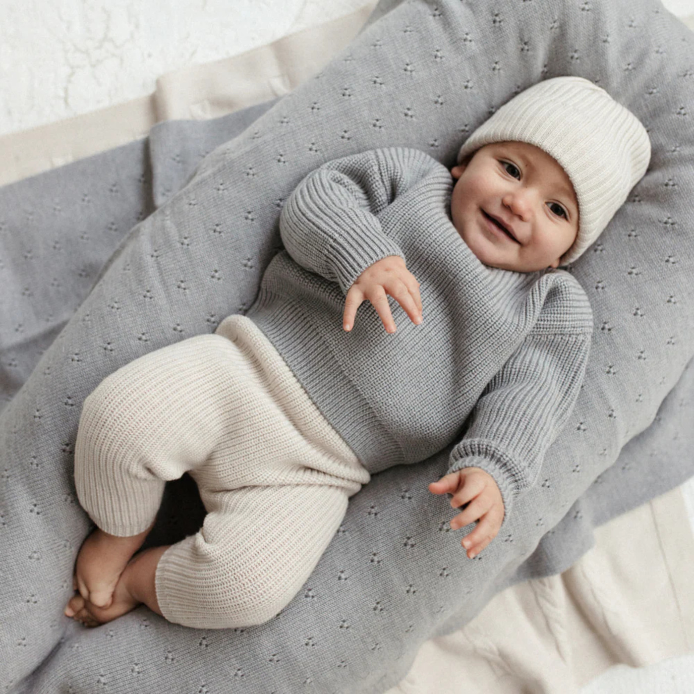 Die hochwertige Merinowolle ist wunderbar sanft zur empfindlichen Babyhaut, wirkt temperaturausgleichend und eignet sich somit ideal für jede Jahreszeit.