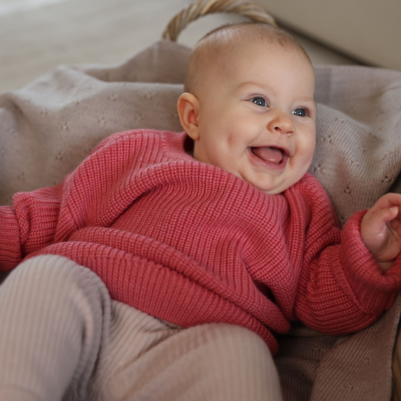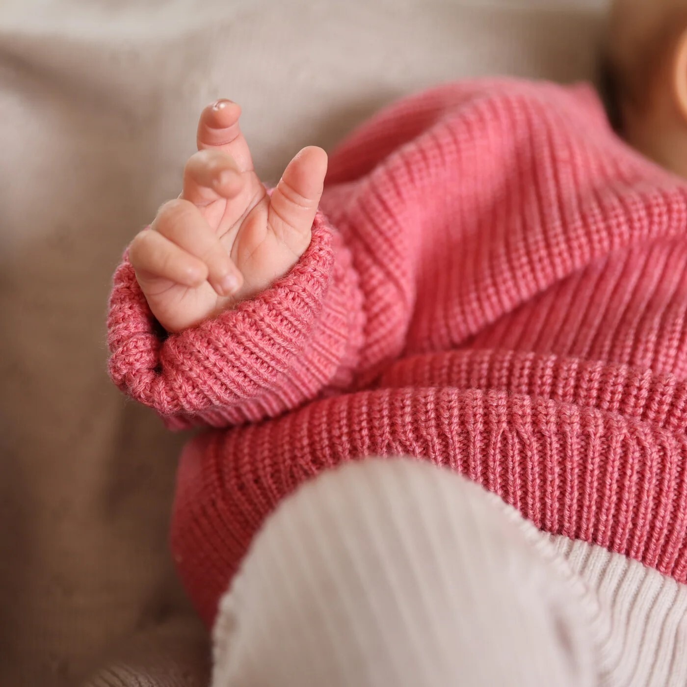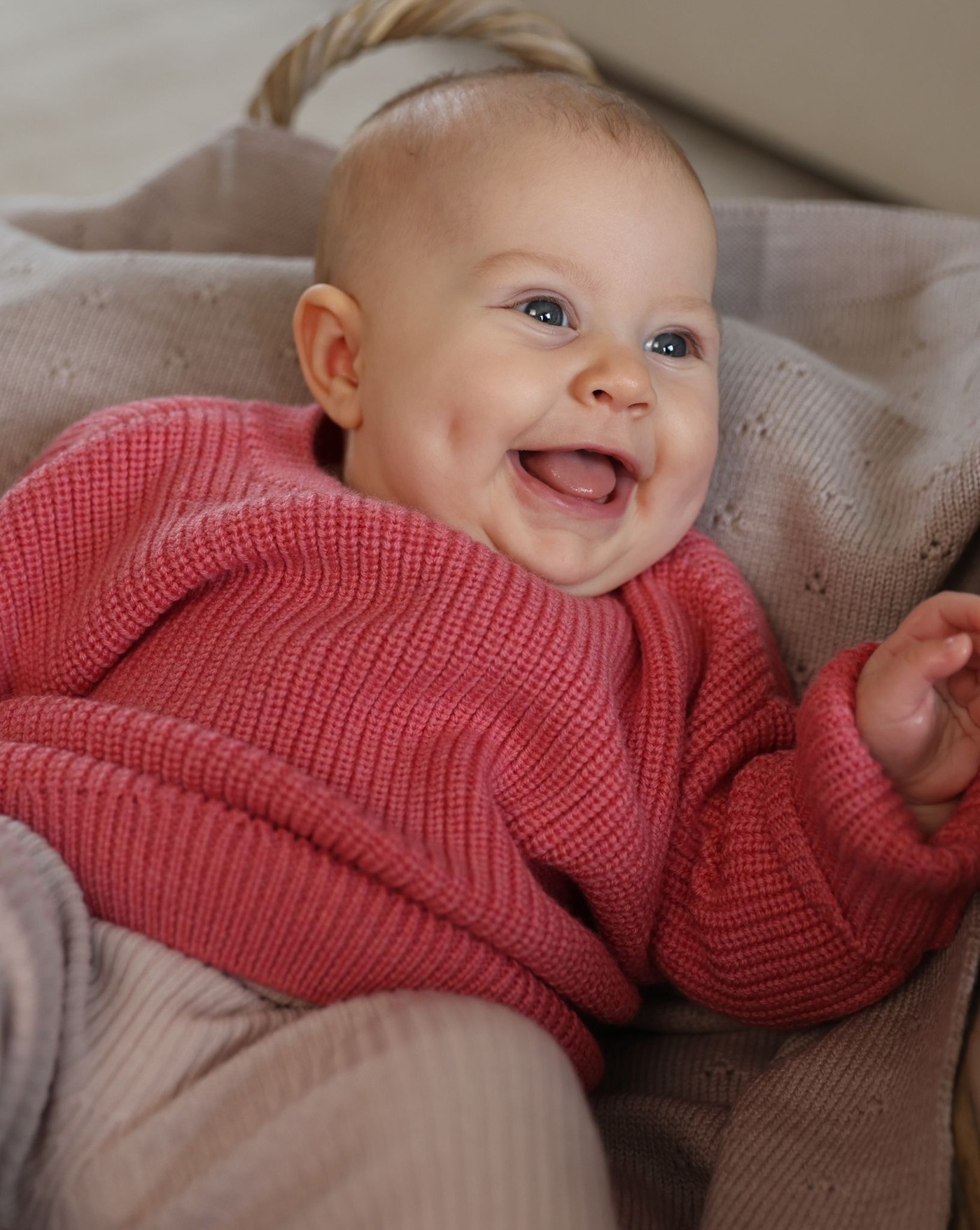Dank der durchdachten Stricktechnik und dem komfortablen Schnitt passt sich der Pullover ideal an und wächst mit deinem Kind mit.