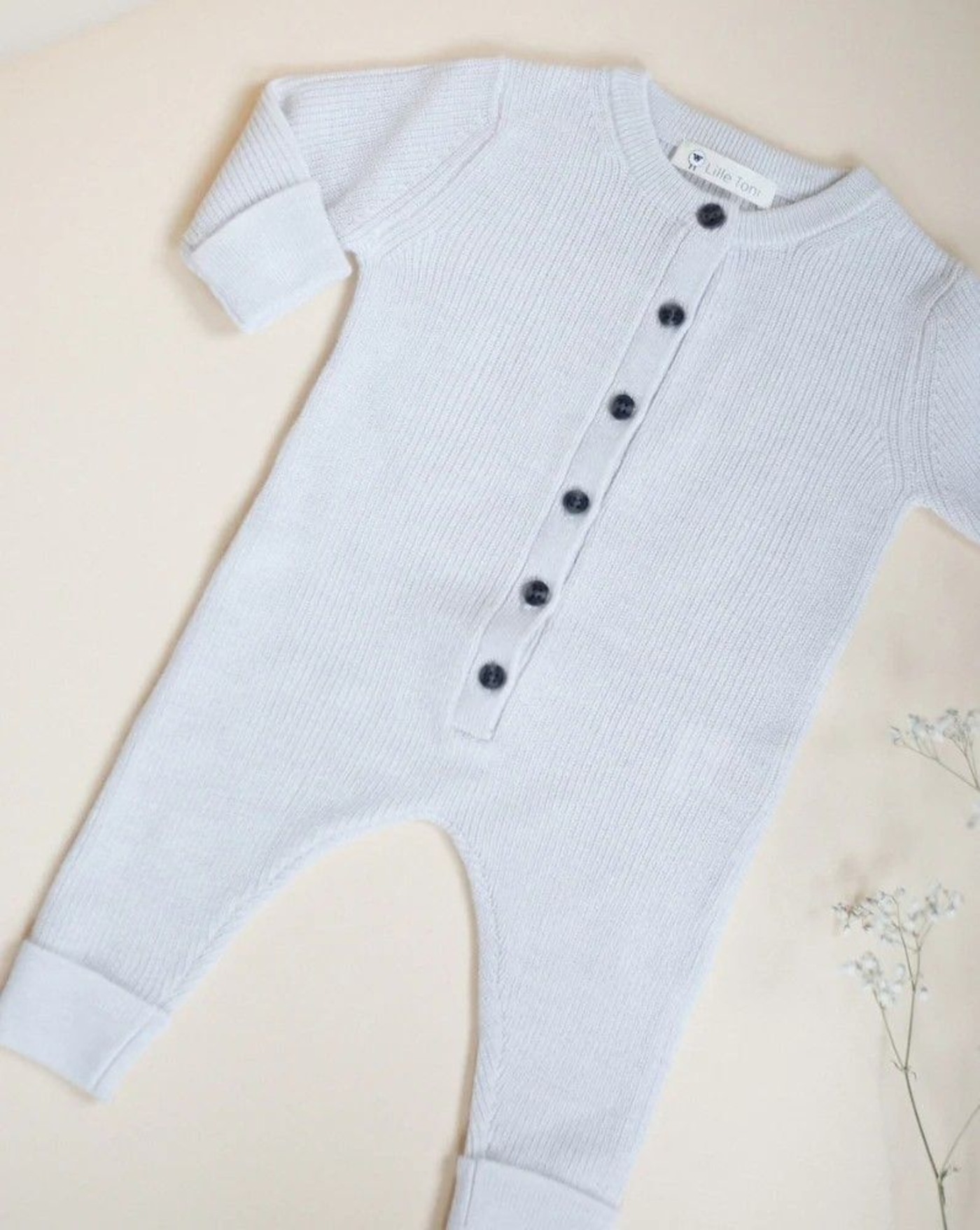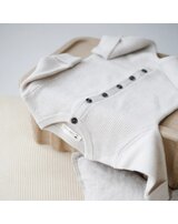 Dank der umschlagbaren Ärmel und Beinenden wächst der Strickoverall einfach mit und bleibt so über viele Monate ein stilvoller Begleiter.