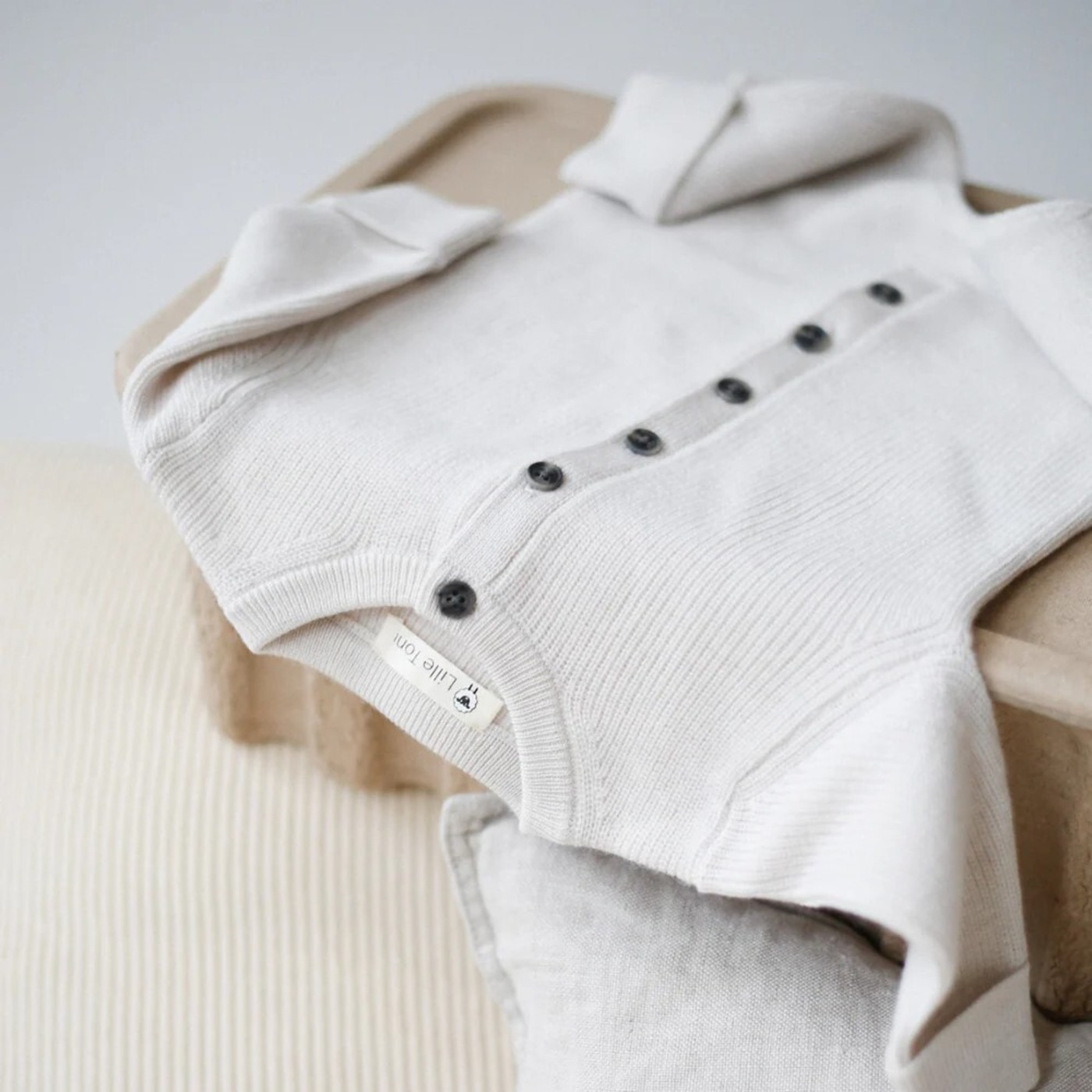 Lille Toni Strickstrampler/-Overall für 0-1 Jahr aus Merinowolle - Creme