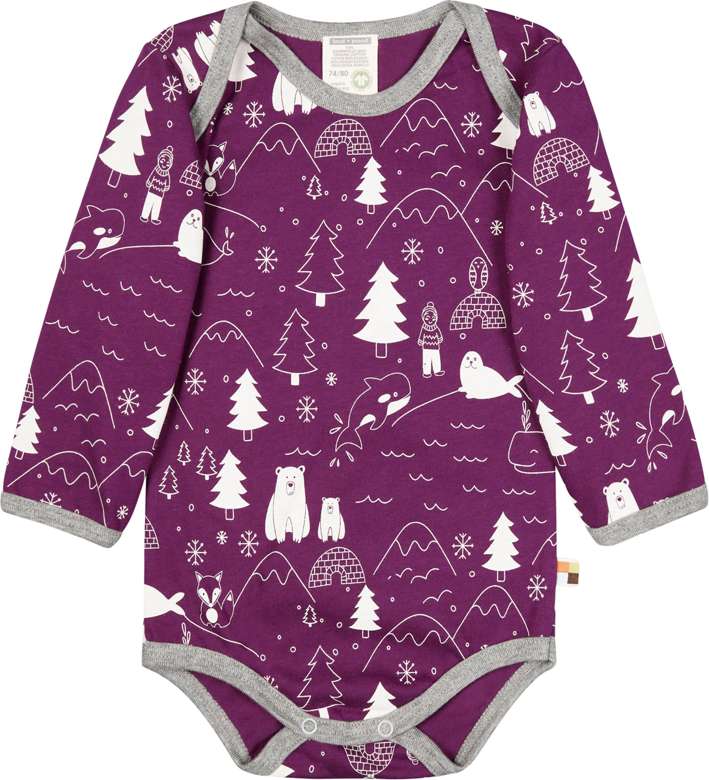 loud+proud Body Langarm Allover EISBÄREN UND ORCAS plum