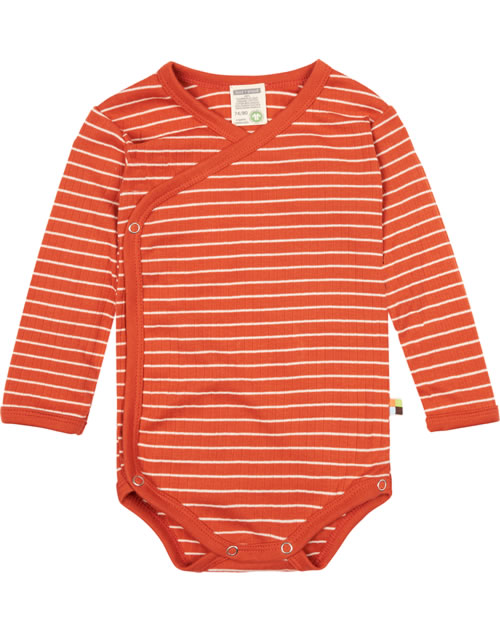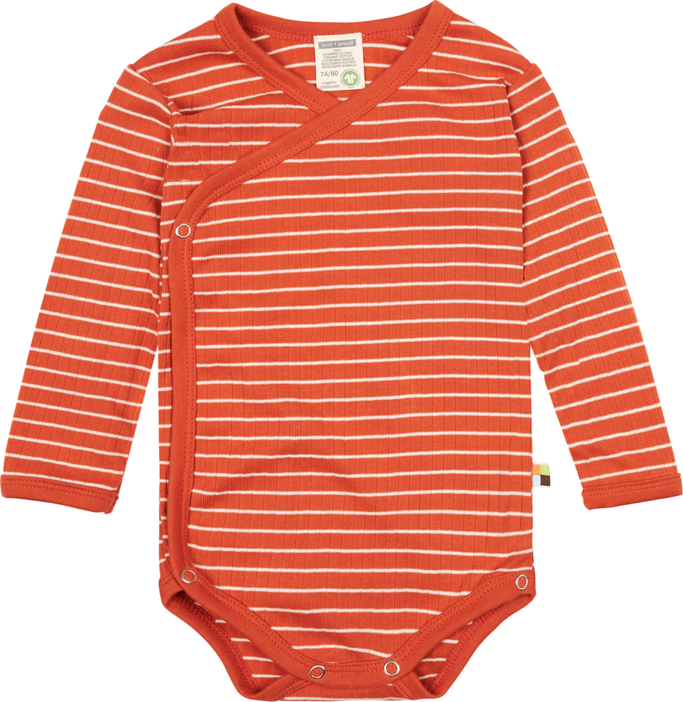 Bequemer, geringelter Langarm-Wickelbody von LOUD + PROUD aus angenehm weicher Baumwolle. Der Wickelverschluss macht das An- und Ausziehen zum Kinderspiel.