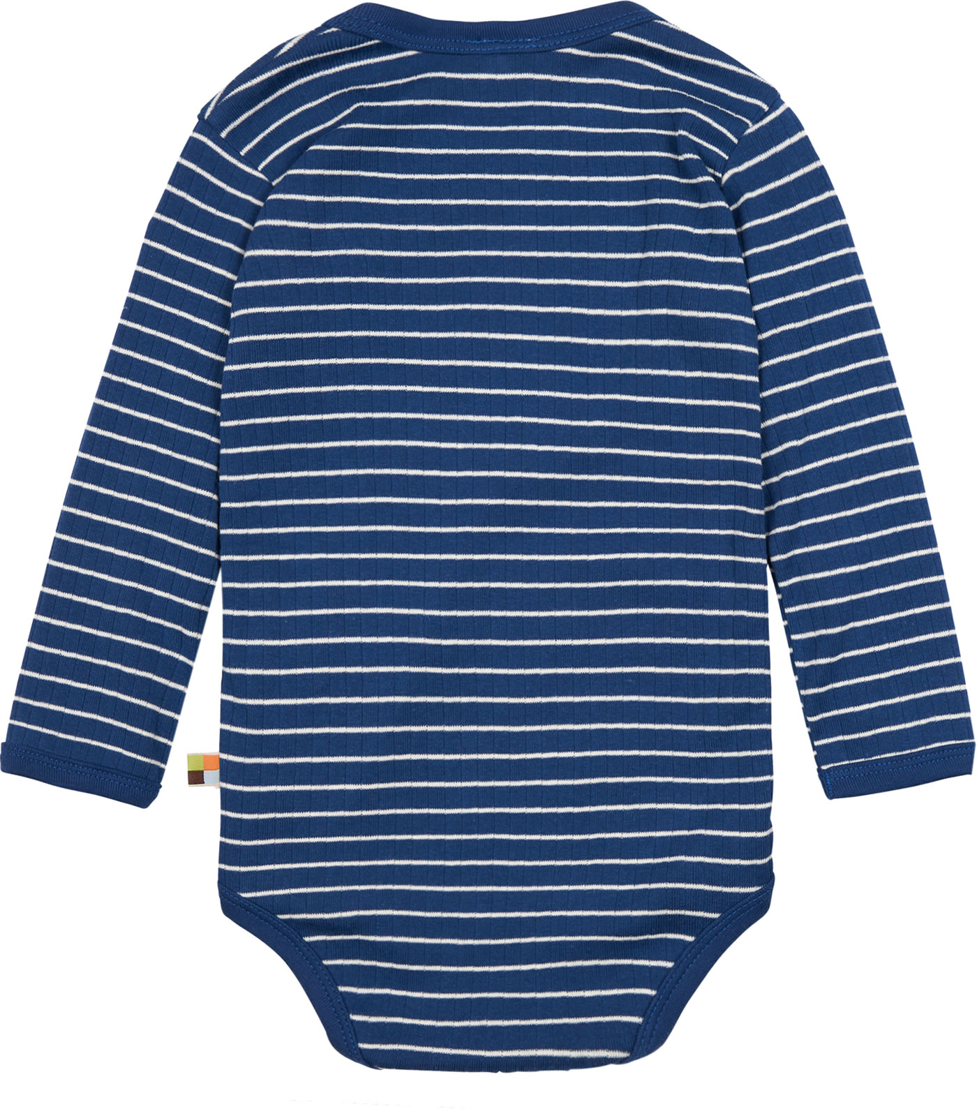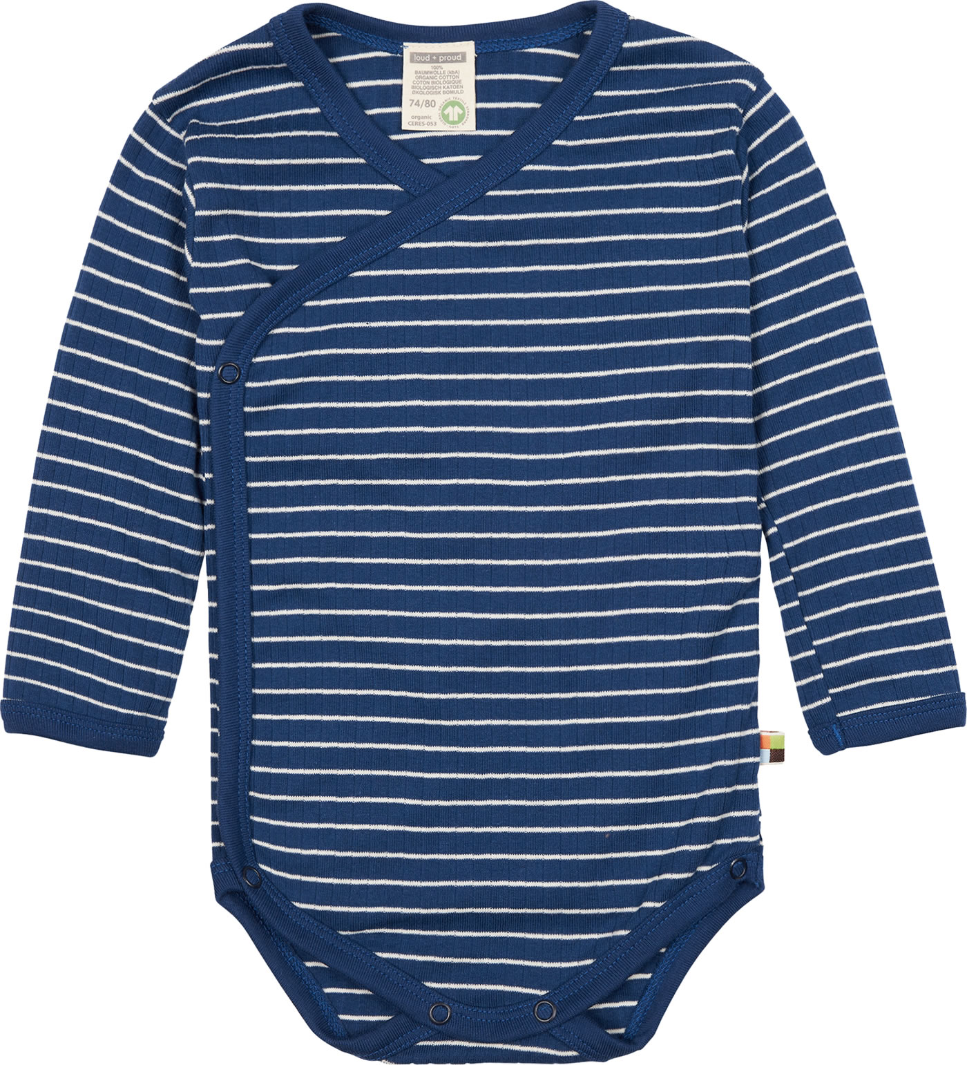 Bequemer, geringelter Langarm-Wickelbody von LOUD + PROUD aus angenehm weicher Baumwolle. Der Wickelverschluss macht das An- und Ausziehen zum Kinderspiel.