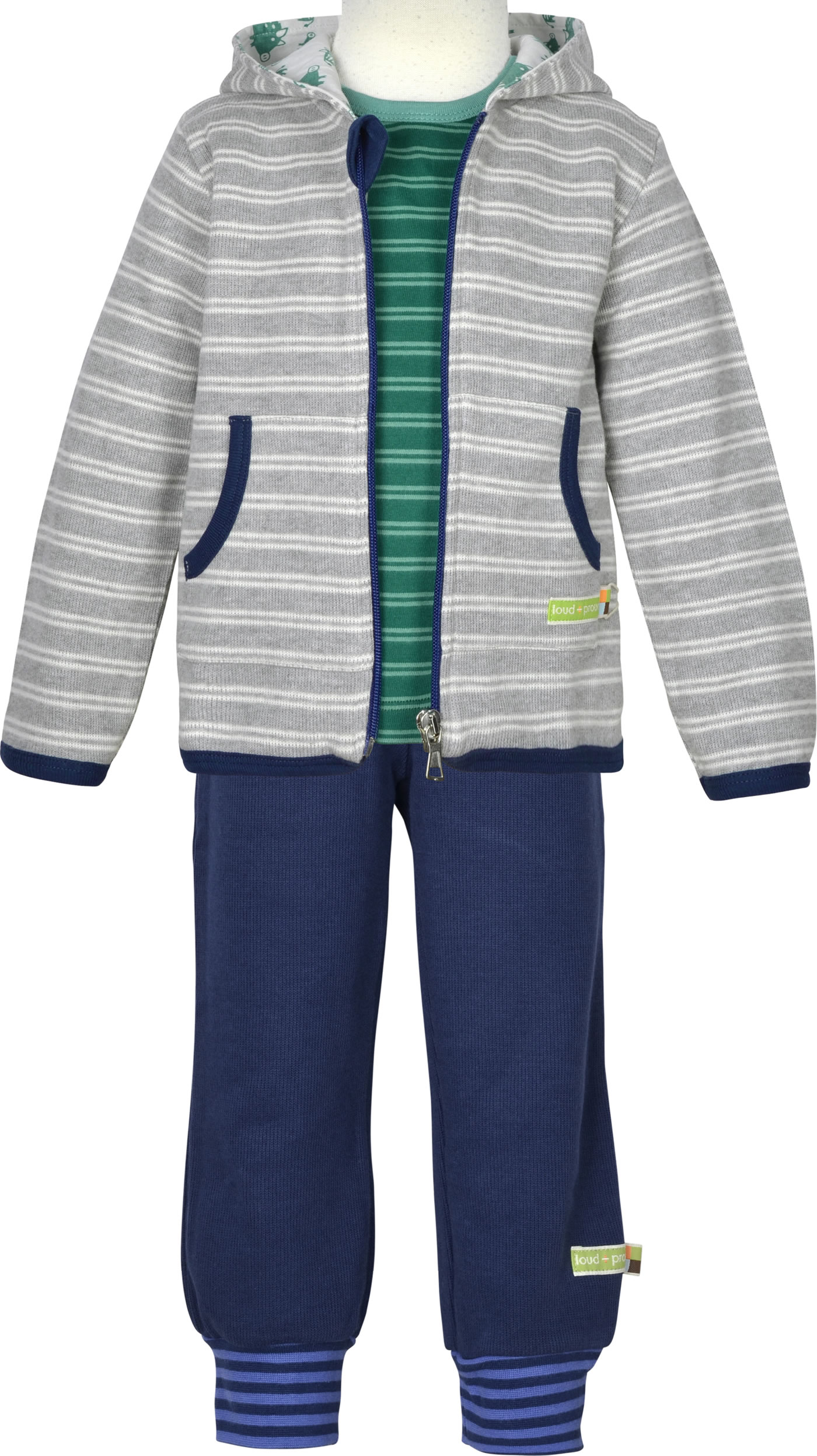 Kombinationsempfehlung: Auf dem Detailbild zusammen mit den Artikeln loud + proud Sweat-Jacke Ringel WALDTIERE grey 3090-gr GOTS Grey (Lo00003090gre) und loud + proud T-Shirt Langarm Ringel WALDTIERE ivy 1077-ivy GOTS Ivy (Lo00001077ivy).