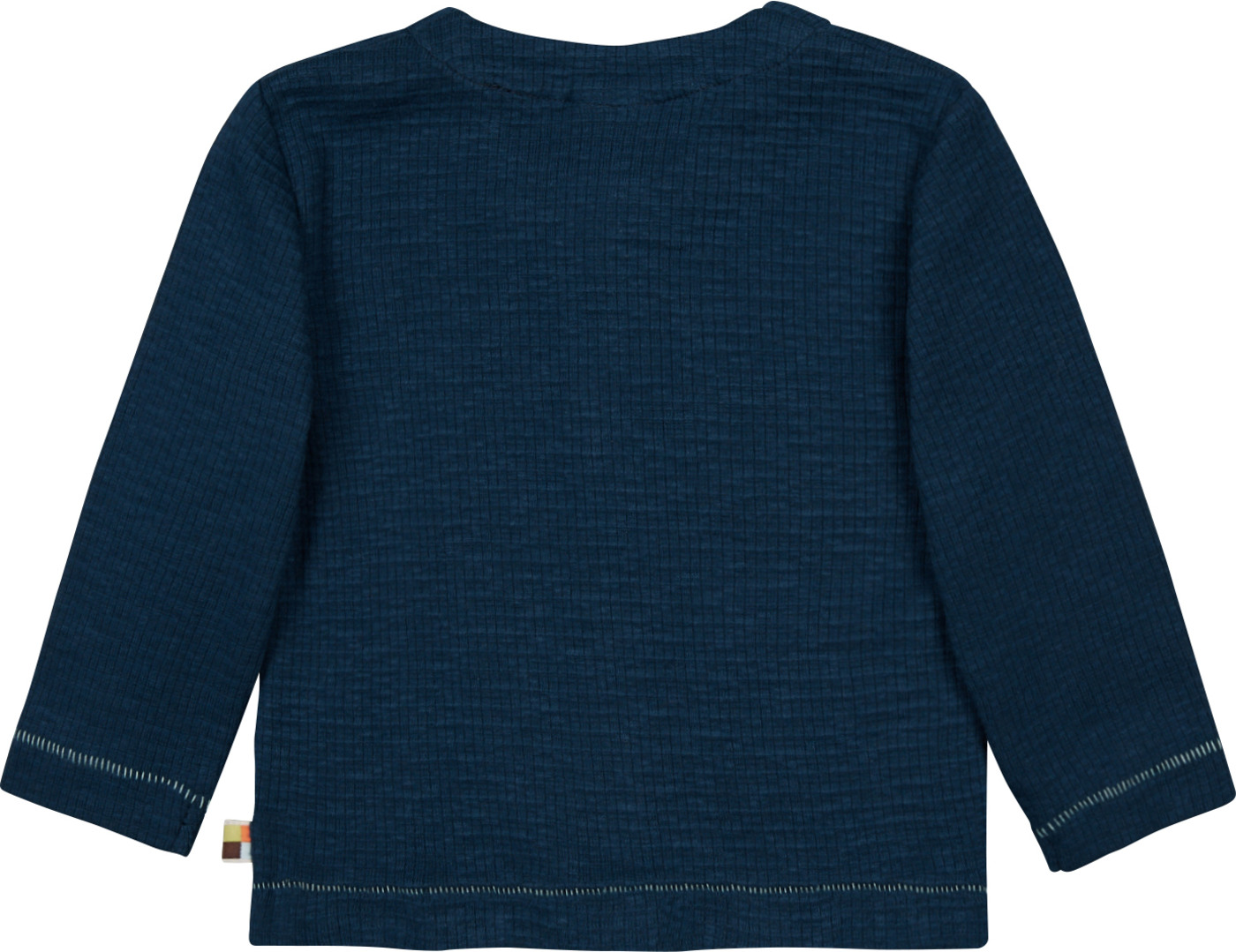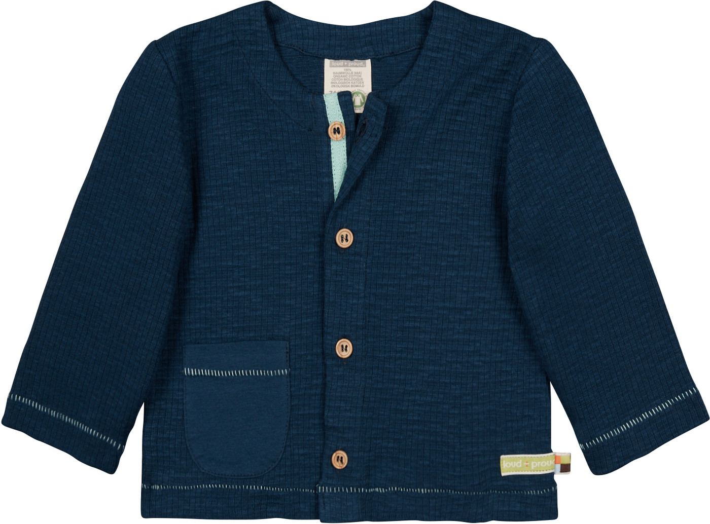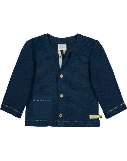 Leichte Strickjacke mit Rundhalsausschnitt in Waffelstruktur mit Knöpfen in Holzoptik von LOUD + PROUD. Ein schönes Detail sind die farbig abgesetzten Nähte. Auf der Vorderseite befindet sich eine Tasche.