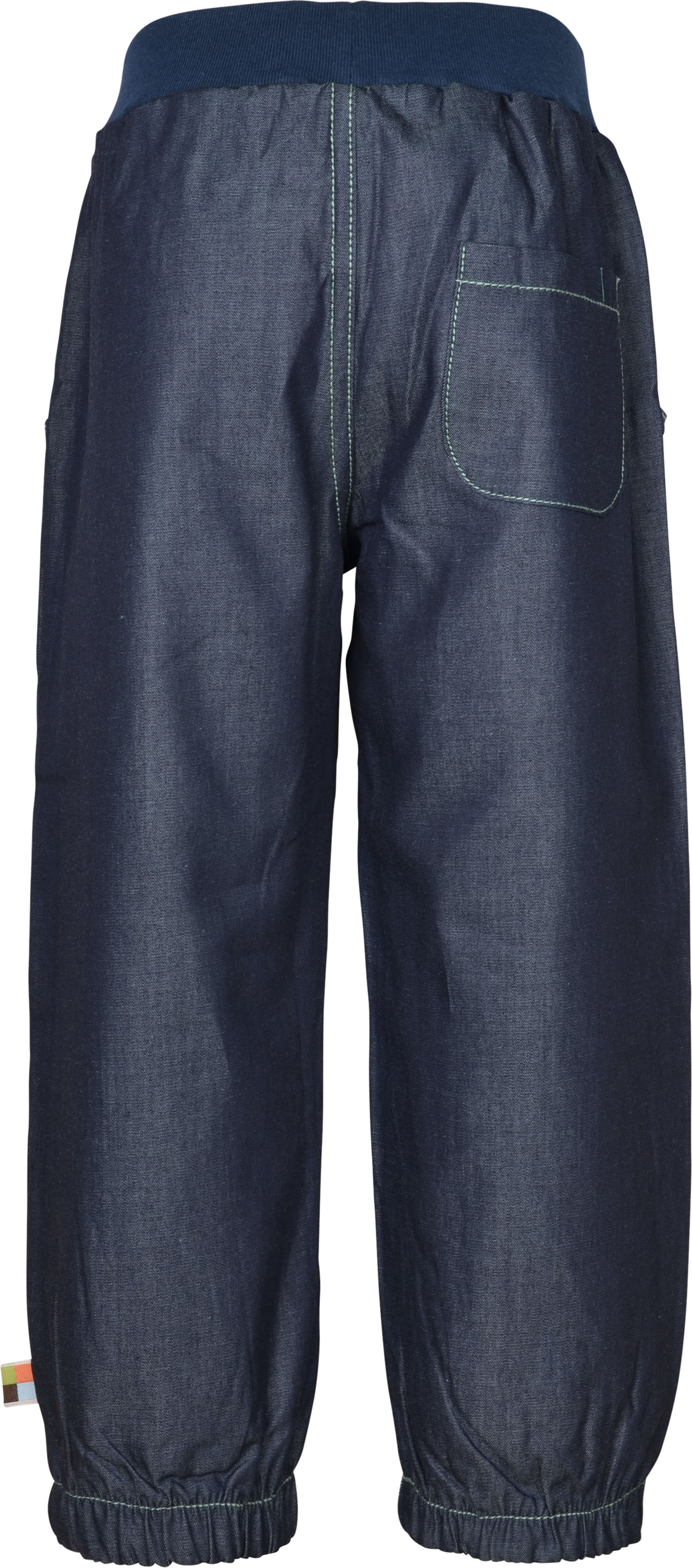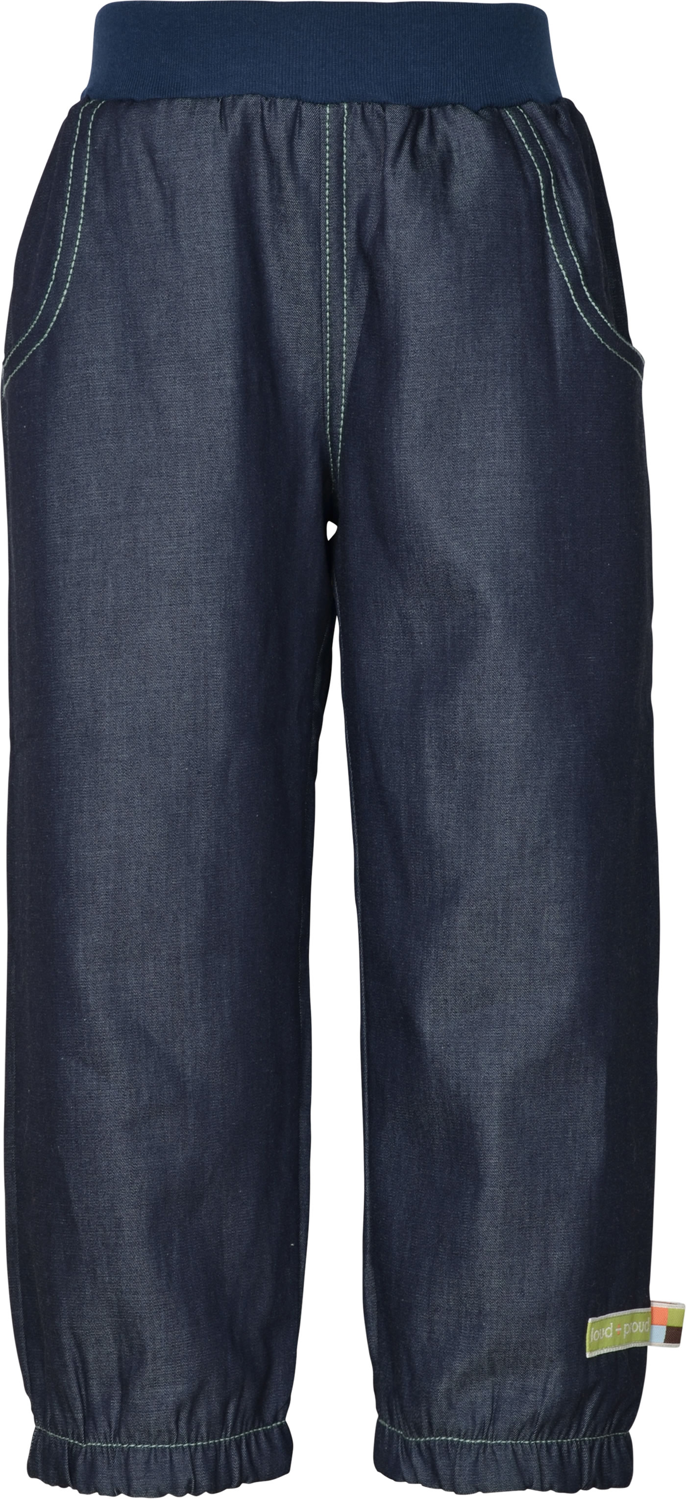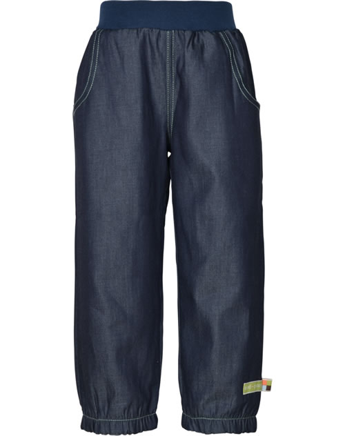 Jeanshose mit Nabelbund von LOUD + PROUD. Die Hose ist aus leichtem Jeans-Stoff und innen mit Baumwoll-Jersey gefüttert. Taschen vorn und hinten bieten Platz für Kleinigkeiten. Der Nabelbund und die Gummibündchen an den Beinen sorgen für einen guten Sitz und die Nähte in Kontrastfarbe sind ein schönes Detail.
